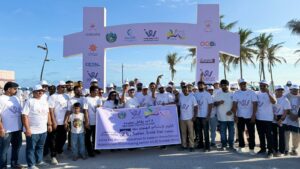 ويأتي المسير تزامنا مع الشهر العالمي للتوعية لسرطان الثدي”أكتوبر الوردي” وشارك الجميع في المسير لمسافة ٦٠٠ متر بداية من مدخل واجهة الشاطئ.