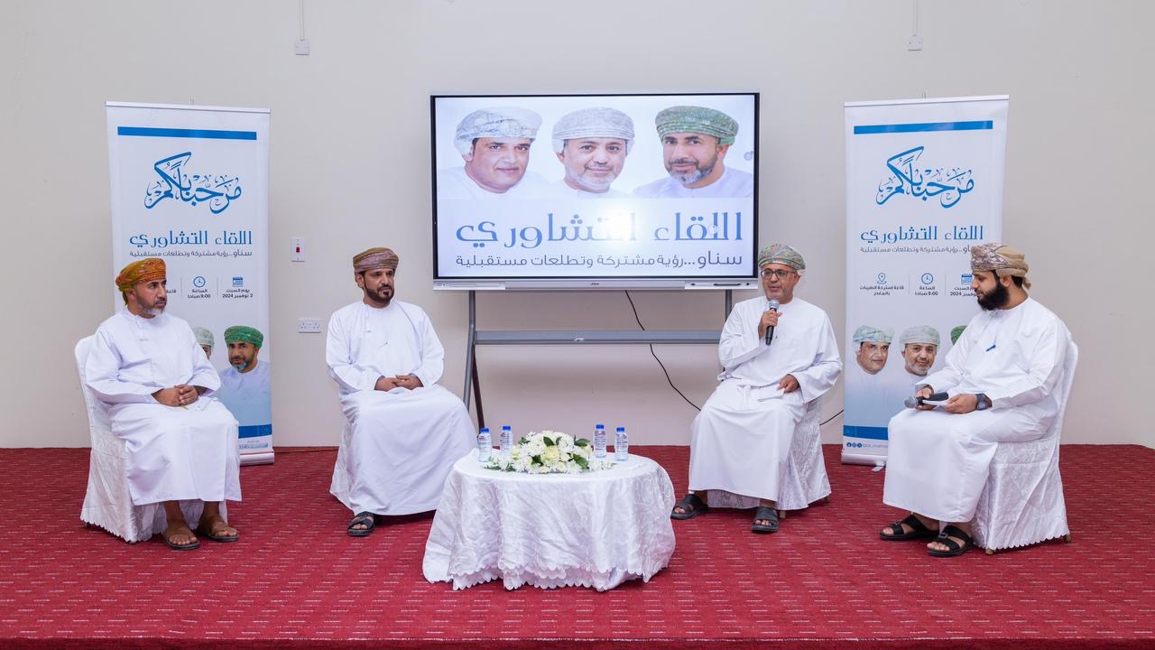 نُظم بولاية سناو بمحافظة شمال الشرقية اللقاء التشاوري بقاعة استراحة الطيبات ضم عدد من مشائخ وأهالي الولاية.