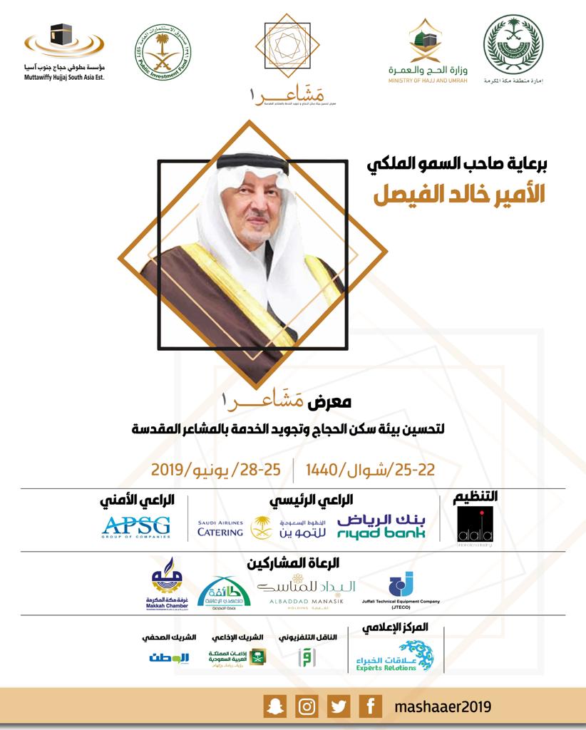 بتوجيه من صاحب السمو الملكي الأمير / عبد العزيز بن سعود بن نايف آل سعود – ( وزير الداخلية ورئيس لجنة الحج العليا ) , وبرعاية كريمة من صاحب السمو الملكي الأمير / خالد الفيصل بن عبد العزيز آل سعود – ( مستشار خادم الحرمين الشريفين – أمير منطقة مكة المكرمة – ورئيس لجنة الحج المركزية ) , و بإشراف من وزارة الحج والعمرة , تنظم مؤسسة مطوفي حجاج دول جنوب اّسيا معرض – ( مشاعر 1 لتحسين وتجويد بيئة سكن الحجاج في المشاعر المقدسة ورفع مستوى جودتها ) , والمقام يوم الثلاثاء – ( 22 ) – شوال ، وسيستمر لمدة ( 4 ) أيام .