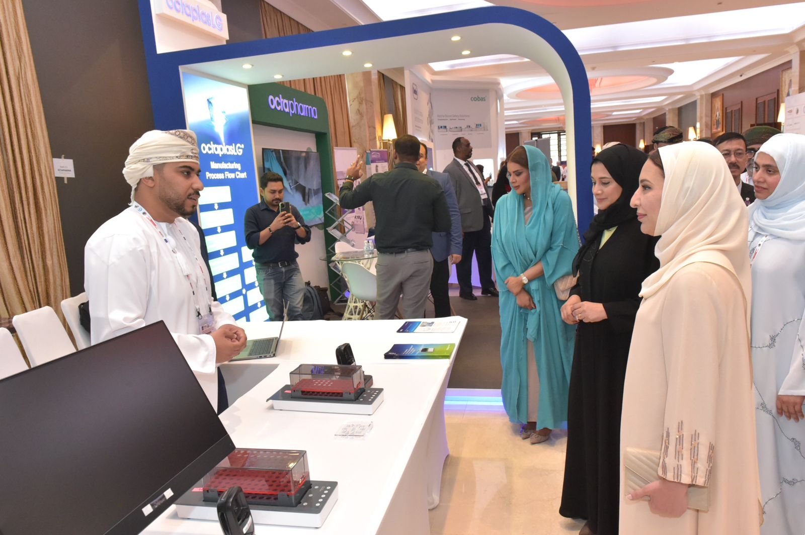 تضمن برنامج الافتتاح أيضا تكريم عدد من المنظمين والمحاضرين . وتجولت الدكتورة سهــام بنت سالم بن سلطــان السنانيـة – الرئيســة التنفيذيــة للمدينــة الطبيـة الجامعيــة –في المعرض المصاحب للمؤتمر الذي استعرضت فيه العديد من الشركات الدولية منتجاتها وتقنياتها المستخدمة في نقل الدم؛ إذ استمعت والحضور من القائمين عليه إلى شرح واف عن محتوياته.