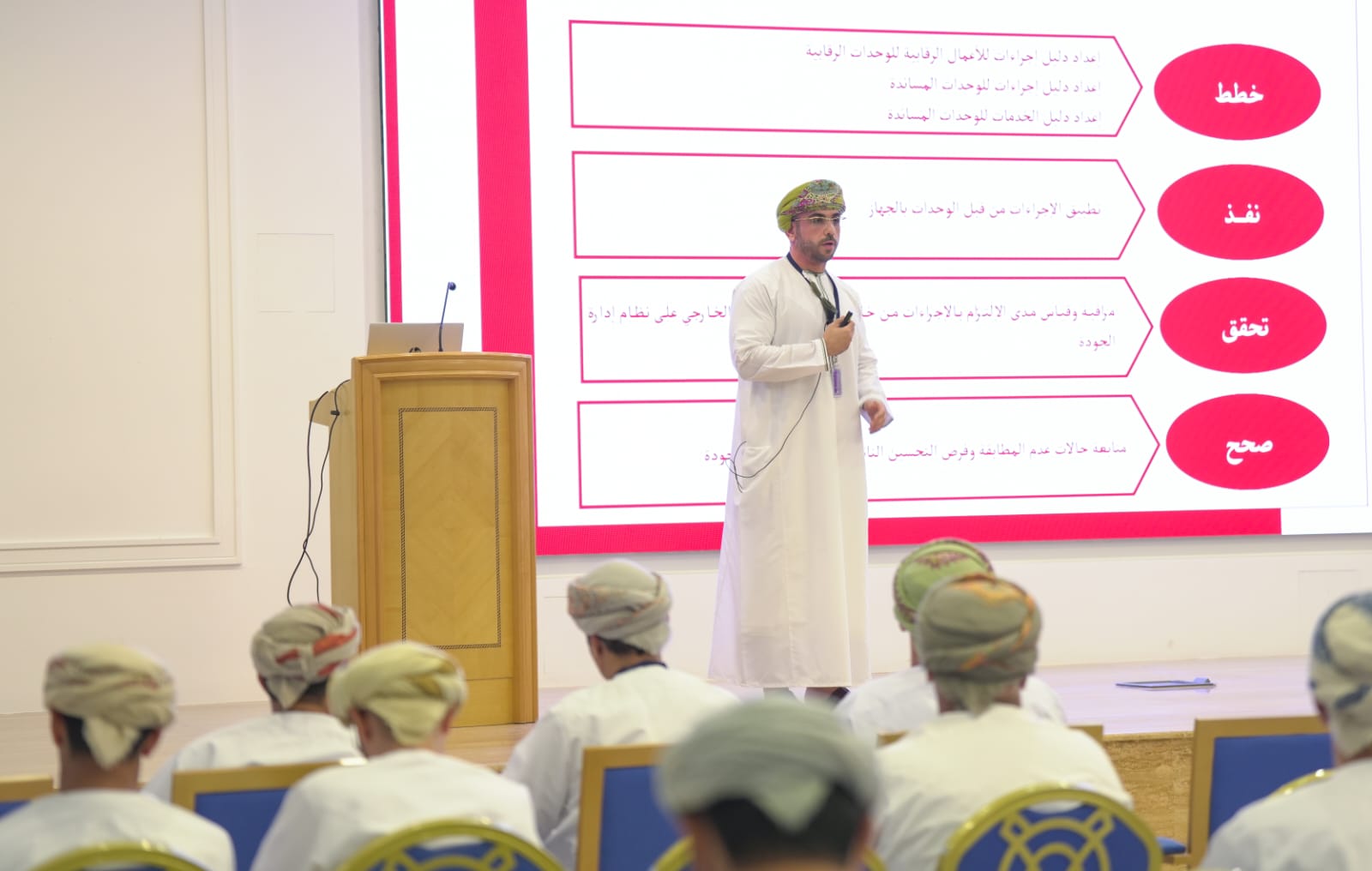 نظمت وزارة الداخلية ممثلة بدائرة التخطيط والتطوير ، وبالتعاون مع وحدة متابعة تنفيذ رؤية عُمان 2040 ، اليوم ، فعالية بمناسبة أسبوع الجودة العالمي تحت شعار “الجودة من الامتثال إلى الأداء المتميز” ، والذي يصادف الأسبوع الثاني من شهر نوفمبر من كل عام ، بهدف تعزيز ثقافة الجودة والتميز المؤسسي، والمساهمة في تحقيق رؤية عُمان 2040 ، وذلك في مسرح ديوان عام الوزارة.