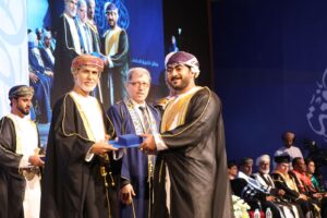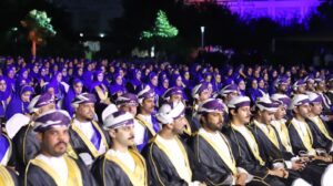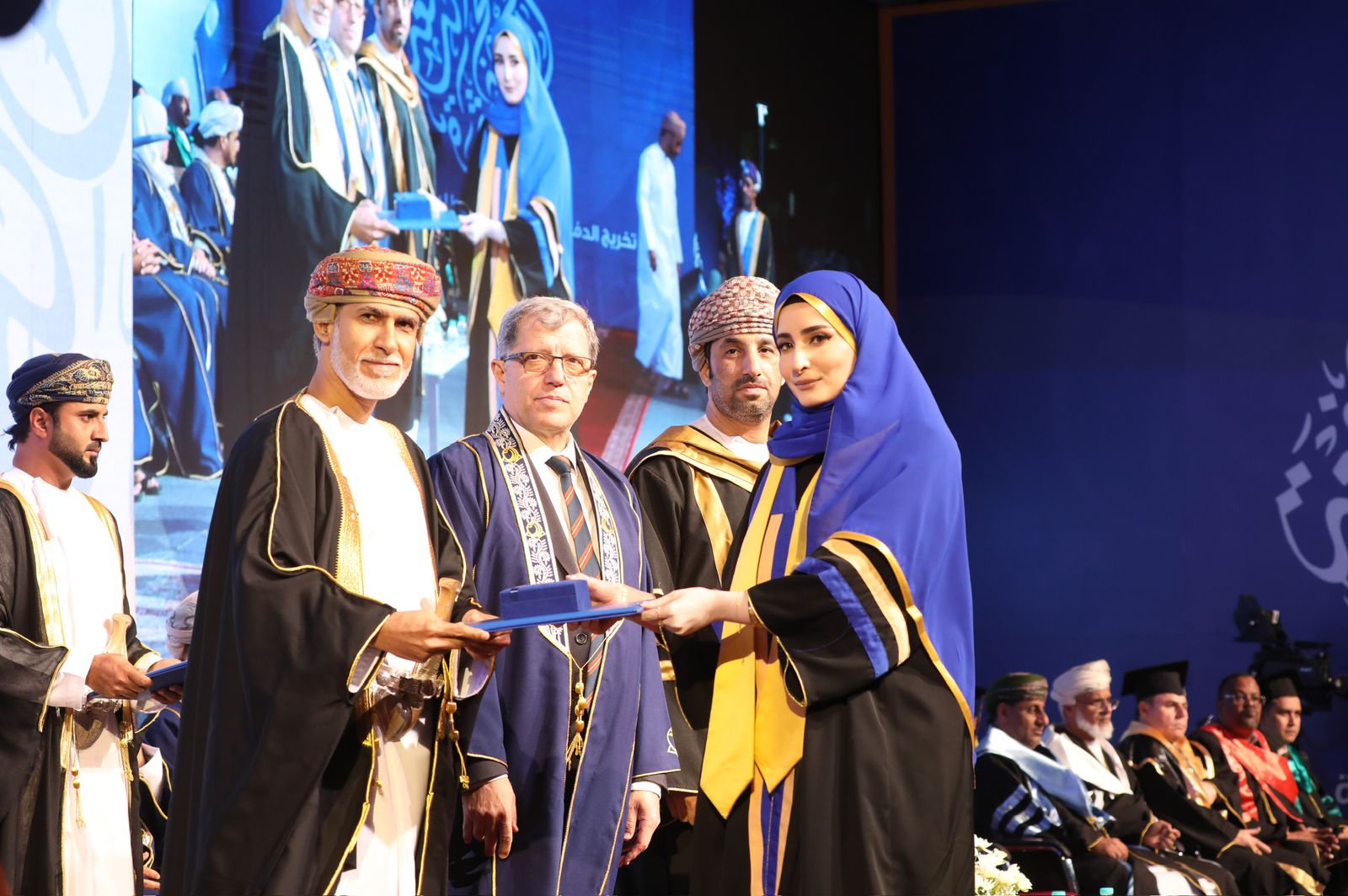 أيها الحفل الكريم ، إننا نعيش الآن فرحة طال انتظارها، غرسنا بذورها بإخلاص وسقيناها بالتفاني. لقد كانت رحلتنا العلمية طويلة مليئة بالتحديات والعقبات، لكننا اليوم نقطف ثمار الجهود، مجددين العهد على المضي قدماً في مسيرتنا البناءة، مساهمين في تنمية عمان الحبيبة، صناعا لمستقبل أكثر إشراقاً. ومن هذه اللحظة، نؤكد عزمنا الراسخ على الانطلاق إلى ميادين العمل والبذل، مقتدين بمن سبقونا من فرسان التنمية الوطنية، لنكون جزءاً من قافلة النهضة العمانية، ساعين إلى تحقيق الأهداف السامية لرؤية عُمان 2040. ومع كل هذا الفرح، لا يسعنا إلا أن نتوجه بعظيم الشكر وعميق الامتنان إلى قائد مسيرتنا، حضرة صاحب الجلالة السلطان هيثم بن طارق المعظم -حفظه الله ورعاه ـ ، الذي أحاطنا برعايته الكريمة ودعمه المتواصل، وبارك لنا في مسيرتنا العلمية والوطنية. كما نعبر عن بالغ امتناننا لجامعتنا العريقة، جامعة الشرقية، هذا الصرح الأكاديمي الذي نفخر بالانتماء إليه. فقد وفر لنا البيئة المثالية لتحقيق طموحاتنا، وكان له، بعد توفيق الله، الدور الأكبر في تتويج جهودنا بعظيم الإنجازات التي نحتفي بها اليوم، ولا ننسى أن نتوجه بخالص الشكر والتقدير لأساتذتنا الكرام على ما قدموه لنا من علم ودعم، فجزاكم الله عنا خير الجزاء، وأدامكم الله مصدرا للعطاء .
