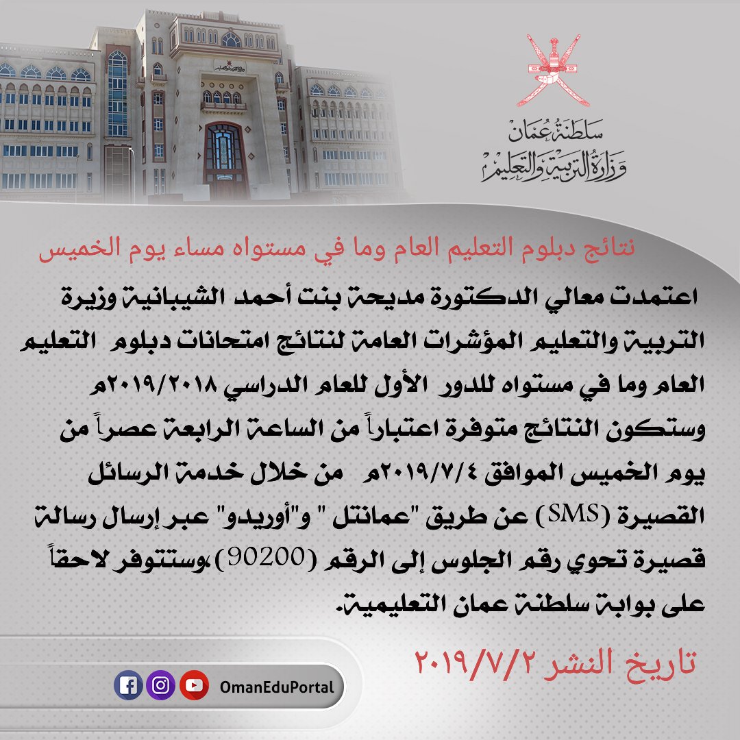 التربية تعتمد نتائج الدور الأول لدبلوم التعليم العام وما في مستواه للعام الدراسي ٢٠١٨/٢٠١٩ م