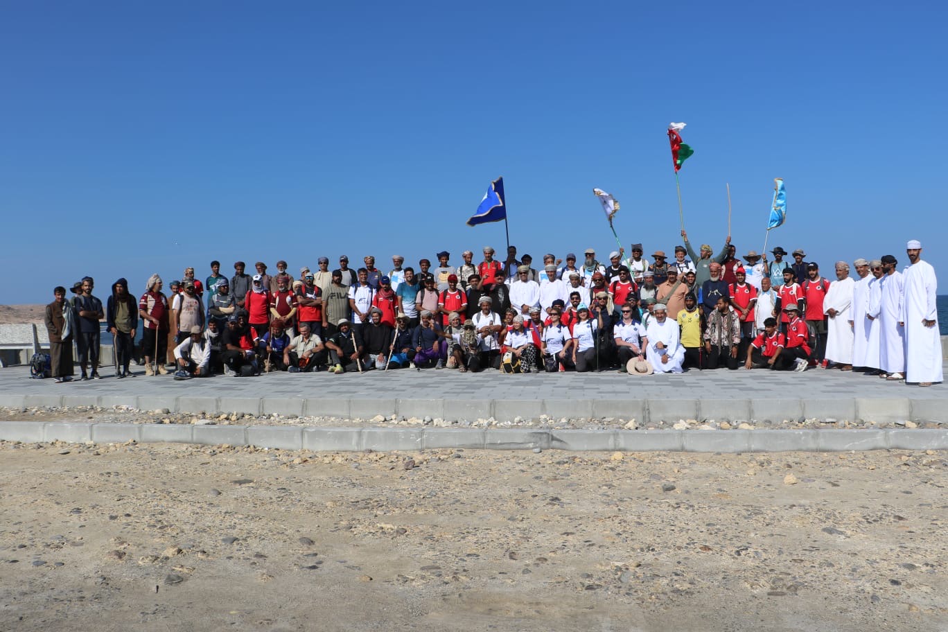 وبلغت مسافة المسير 20كم ، بداء من منطقة السيفة بولاية مسقط ، وانتهاءا بقرية الحاجر بولاية قريات وكانت الإنطلاقة من أمام شطئان قرية السيفة ، حيث منظر البحر الذي يصافح قمم الجبال ، مروراً بتضاريس الطبيعة الخلابة ذات التنوع الجغرافي البديع من سهول وجبال ومنحدرات مستمتعين بمناظر متعددة من الطبيعة البكر.