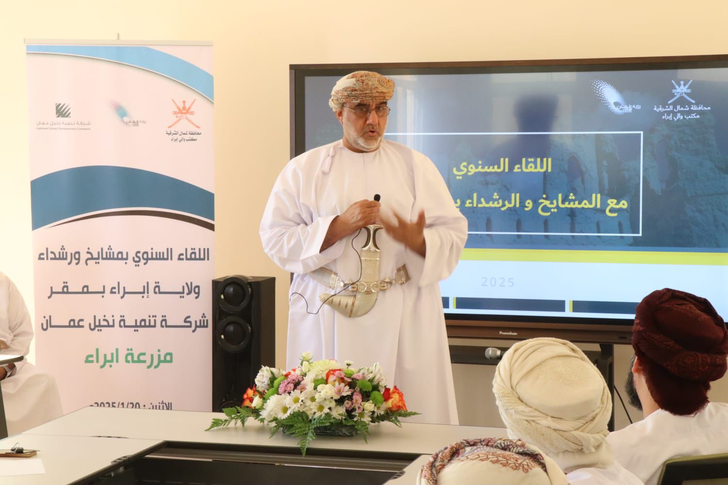 مكتب والي إبراء يستغرض المشاريع التنموية ومناقشة مشروع تنمية نخيل عمان في اللقاء السنوي بولاية إبراء