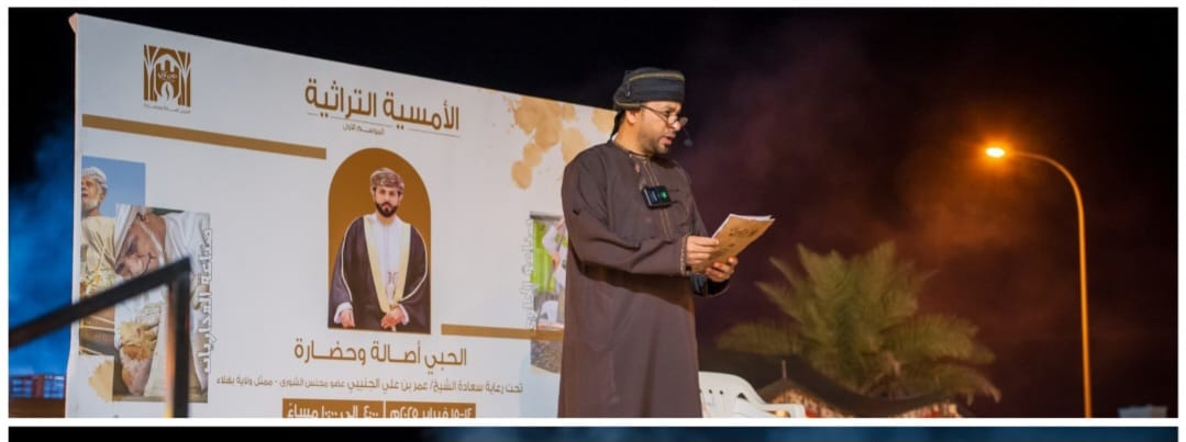 نظم حصن كافيه ببلدة الحبي بولاية بهلاء مؤخرا أمسية تراثية بعنوان (الحبي أصالة وحضارة ) أقيمت الأمسية تحت رعاية رعاية سعادة الشيخ عمر بن علي الجنيبي عضو مجلس الشورى_ ممثل ولاية بهلاء بحضور جمع من الأهالي والشباب و تهدف الأمسية إلى غرس القيم الأصيلة والتعريف بمكونات الهوية الوطنية، في جو من الفخر والاعتزاز.