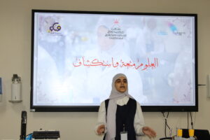 وقدمت مجموعة من الطالبات شرح عن مختبر الكيمياء الإفتراضي وعرض مجموعة من التجارب العلمية بعنوان العلوم متعة واستكشاف كما تم تقديم مجموعة من المواهب الرياضية وعرض إنجازات المدرسة في الجانب الرياضي وكانت آخر الفقرات عرض إنجازات الطالبات في المسابقات على مستوى المحافظة والسلطنة.