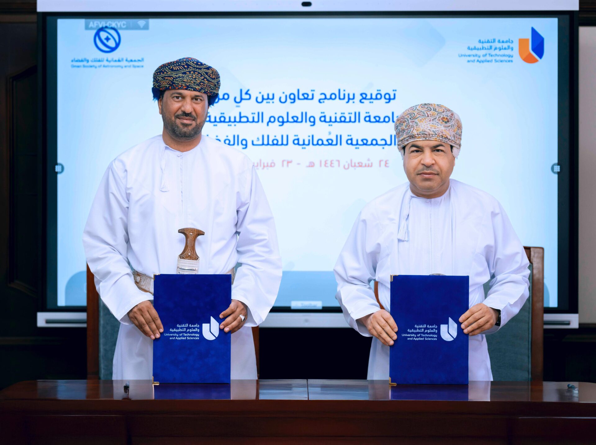 توقيع برنامج تعاون بين جامعة التقنية والعلوم التطبيقية والجمعية العُمانية للفلك والفضاء