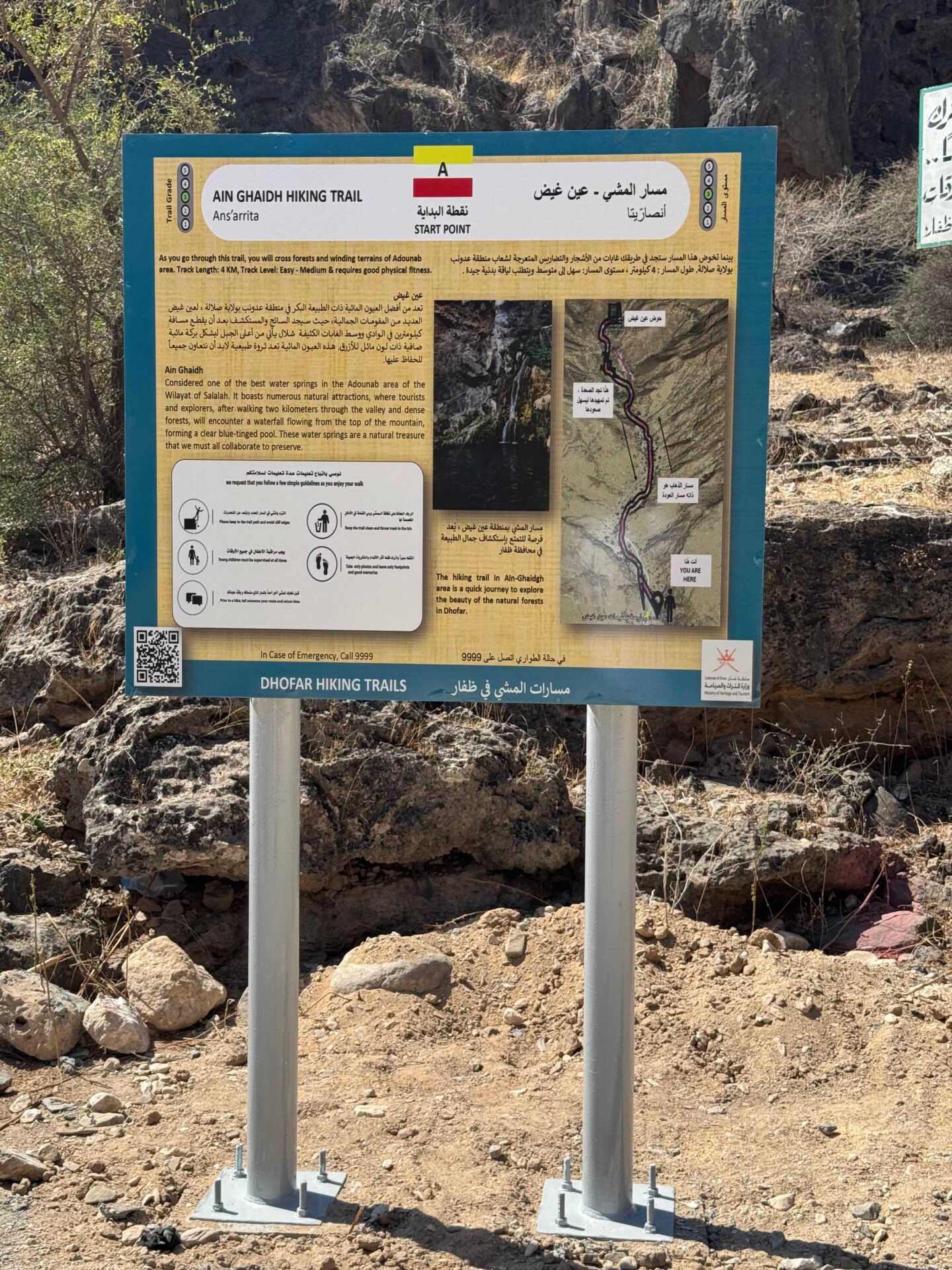 كما تضمنت أعمال التطوير تزويد مسارات المشي الجبلي في كل من منطقة عين حشير وأشجار التبلدي ومسار عين غيض باللوائح الإرشادية لتوجيه الزوار نحو المسارات المذكورة، بالإضافة إلى إعادة طلاء العلامات الدولية للمسير.