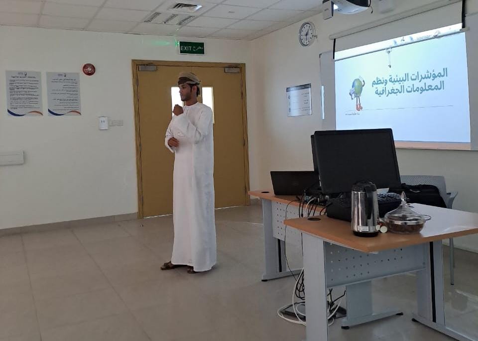 وخلال الورشة استعرض بالمحاضرة مفاهيم المؤشرات البيئية، مثل جودة الهواء والمياه، والتنوع الحيوي، والتغيرات المناخية، إضافة إلى آليات الرصد والتقييم باستخدام تقنيات نظم المعلومات الجغرافية. كما تم تقديم تطبيقات عملية لخرائط رقمية وتحليل بيانات مكانية تساهم في دعم التخطيط البيئي المستدام.