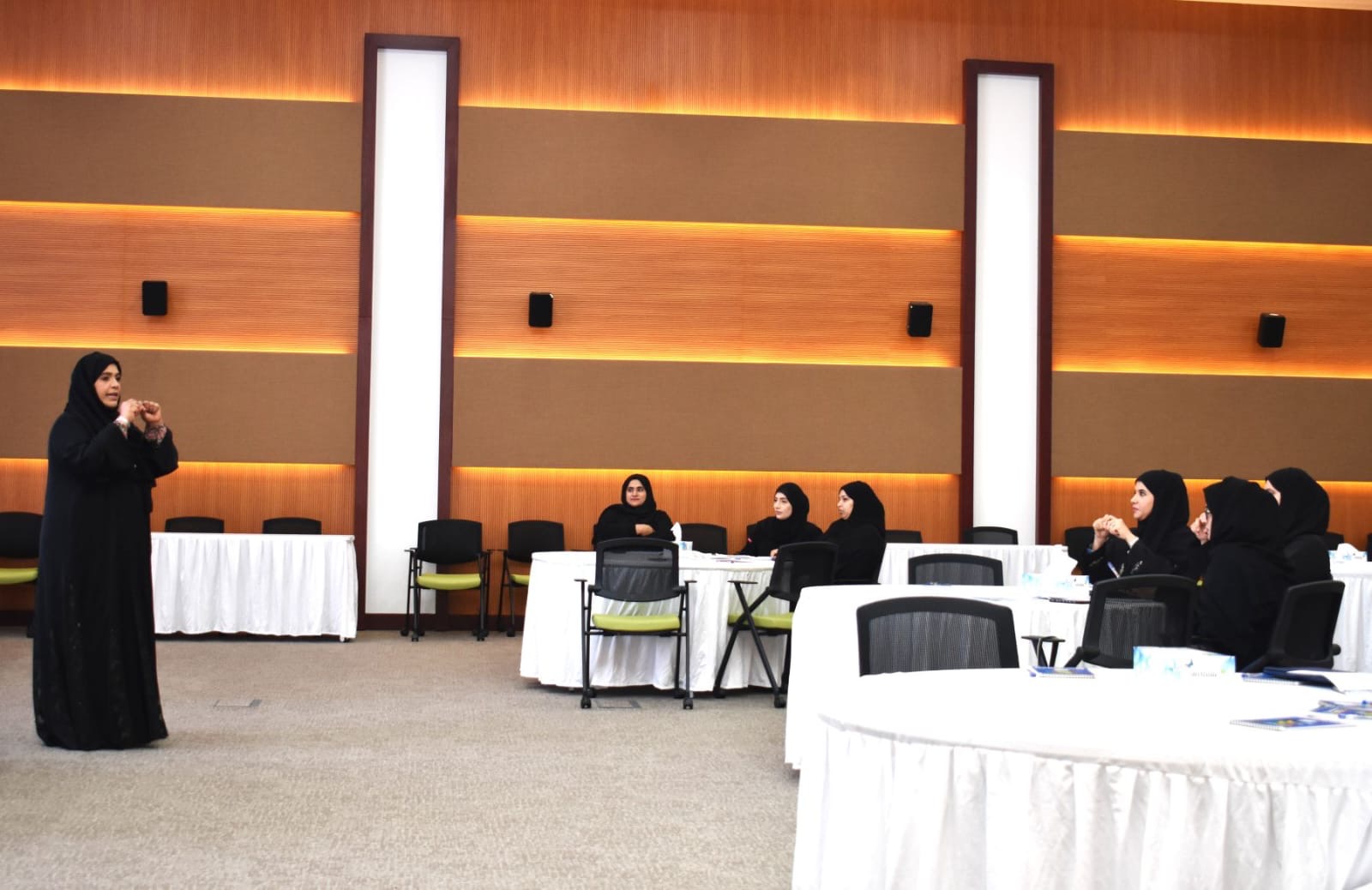 وتهدف هذه الحلقة التي تقام على – 5 أيام – إلى نشر لغة الإشارة العمانية لموظفي المديرية العامة للأشخاص ذوي الإعاقة، وتسهيل لغة التواصل وإنهاء معاملات المراجعين من ذوي الإعاقة السمعية، وتزويد الموظفين بالمصطلحات الخاصة بالمسميات الوظيفية والمهام ومسميات الأقسام والدوائر بالمديرية، إلى جانب تأهيلهم على القدرة للتعامل مع الأشخاص ذوي الإعاقة السمعية في مواقف الحياة المختلفة، وتمكينهم على توظيف المصطلحات الإشارية في جمل وحوارات للتواصل مع ذوي الإعاقة السمعية.