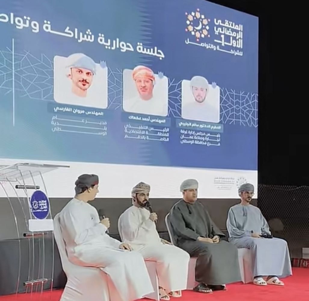 وعلى هامش الملتقى قدم المنشد محمد الوهيبي كلمات معبرة عن شهر الفضيل وخيراته بعد ذلك كان هناك جلسة حوارية شراكة وتواصل قدمها كل من المكرم الدكتور سالم سليم الجنيبي والمهندس /احمد علي عكعاك الرئيس التنفيذي للمنطقة الاقتصادية الخاصة بالدقم والمهندس مروان الفارسي مدير عام بلدية الوسطى وأدارها الدكتور فهد المرشودي رئيس مكتب الإعلام بالوسطى تحدثة عن دور الجهات الحكومية والخاصة في أعمال رواد الأعمال بالمحافظة وفتح النقاش لرواد الأعمال للأسئلة فيما يخص بعض المشاريع المتعلقة بالمناقصات وكيفية الحصول عليها وفق الأنظمة والضوابط المعمول بها والرد عليهم من قبل المختصين