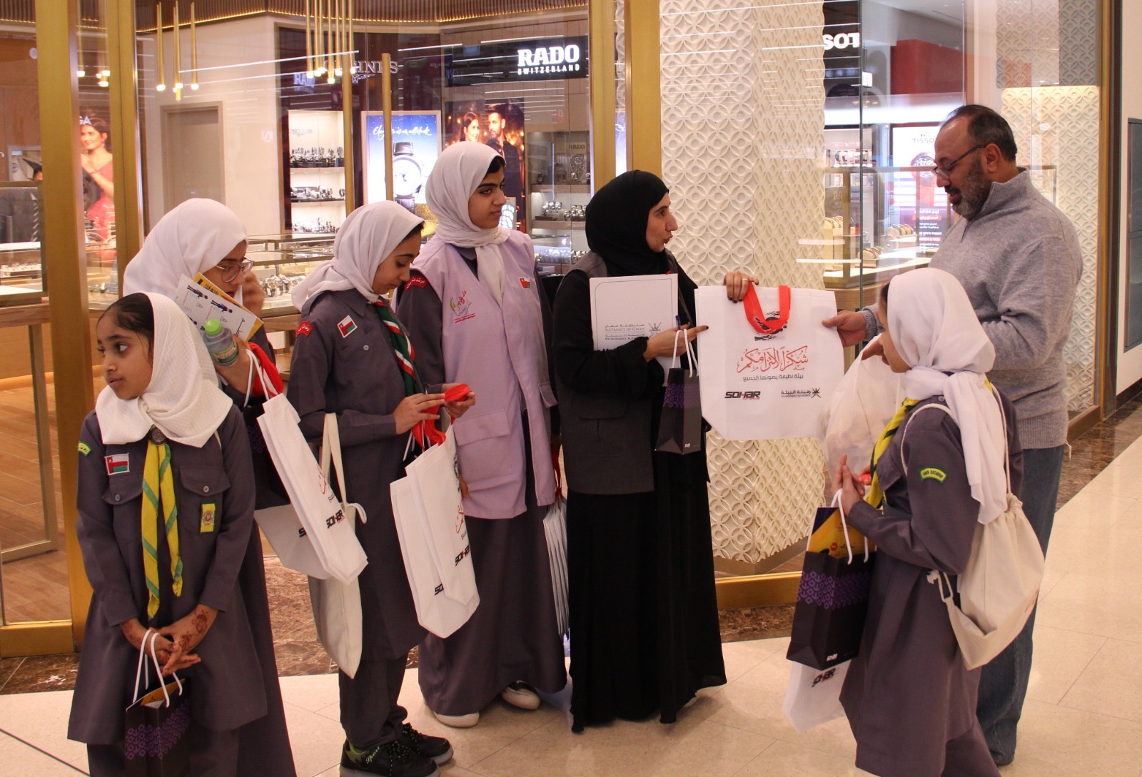 نظمت هيئة البيئة بمحافظة شمال الباطنة فعالية توعوية بشأن قرار حظر استخدام أكياس التسوق البلاستيكية اليوم الأربعاء وبالتعاون مع قسم الكشافة والمرشدات بمحافظة شمال الباطنة و مركز سيتي سنتر صحار، وذلك بدعم من شركة إدارة ميناء صحار وبمشاركة عدد من مدارس المحافظة من فرق المرشدات والزهرات والأشبال من مدارس الحكمة والطريف بولاية صحار والعديد من الأفراد والمهتمين بحماية البيئة.