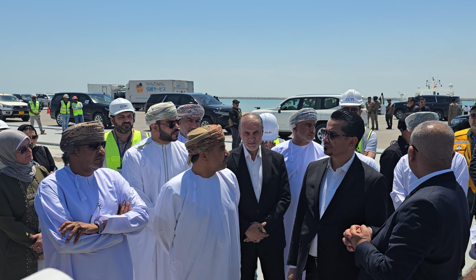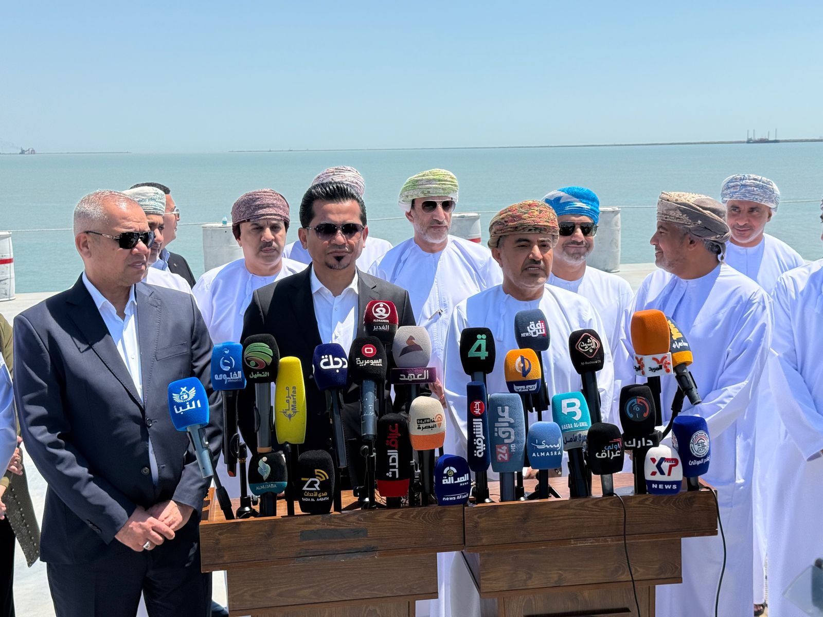 ضمن زيارة تهدف إلى تعزيز التعاون والشراكة الاسترتيجية بين سلطنة عمان والجمهورية العراقية في قطاع النقل والخدمات اللوجستية قام معالي المهندس سعيد بن حمود المعولي وزير النقل والاتصالات وتقنية المعلومات يرافقه سعادة المهندس خميس بن محمد الشماخي وكيل الوزارة للنقل وسعادة الشيخ محمود بن مهنا الخروصي سفير سلطنة عمان في الجمهورية العراقية وعدد من المسؤولين في الوزارة بزيارة اليوم الجمعة إلى ميناء الفاو الكبير بالعراق حيث رافق الوفد العماني خلال الزيارة معالي رزاق محيبس السعداوي وزير النقل بالجمهورية العراقية وعدد من المسؤولين العراقيين.