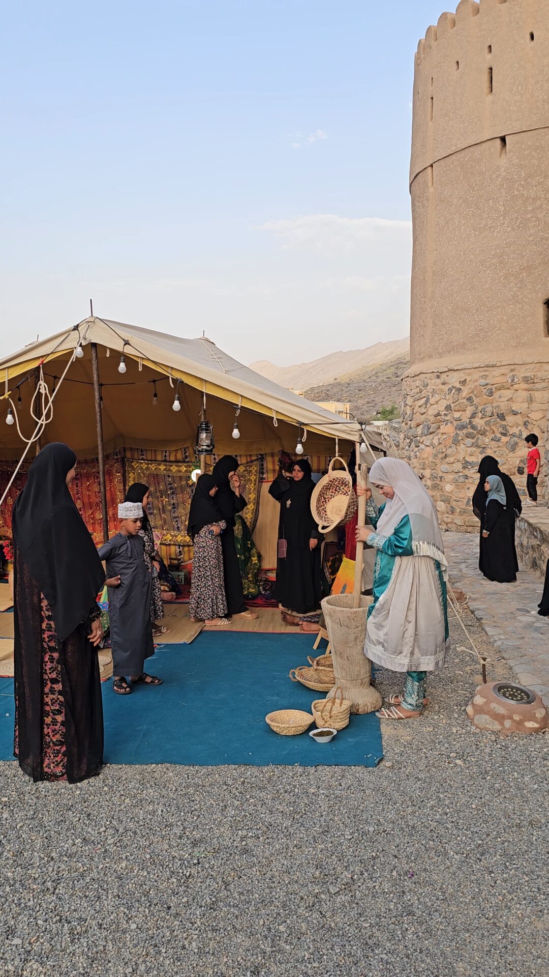 تم التجول في معرض الأسر المنتجة المتنوعة واللجان التابعة للجمعية وبعض المشاركات من حرف تراثية المتنوعة والألعاب الشعبية ومشاركة إحدى نساء الولاية من كبار السن بتعليم الأطفال القرآن الكريم ثم تقديم الطالب أحمد بن صالح الهطالي التهلولة والطالب أحمد بن محمد الحراصي بالقاء شعر ( عمان المجد)وتقديم الطالبة ليان بنت أسلم الشريفية فقرة (حكواتي ).