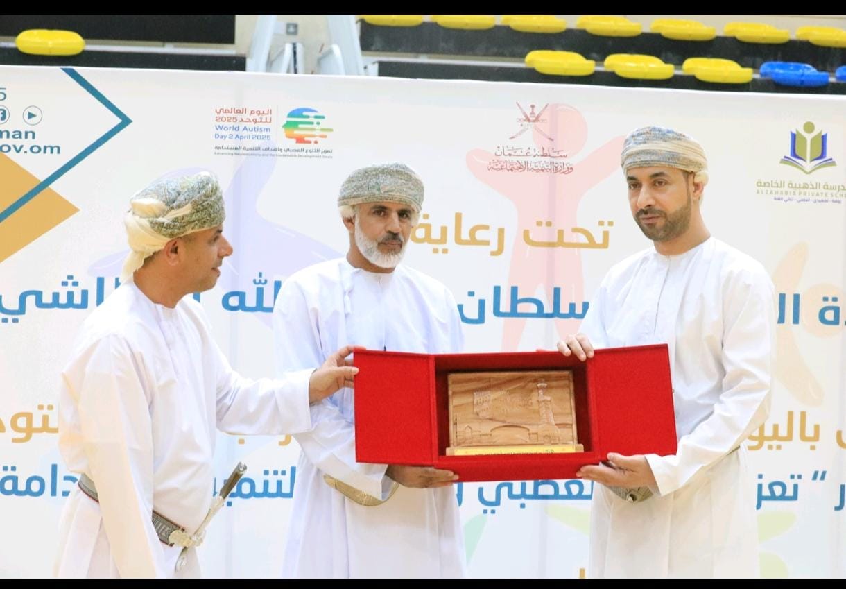 شهدت الصالة الرياضية بالمجمع الرياضي بصحار يوم الأربعاء الاحتفال باليوم العالمي للتوعية باضطراب طيف التوحد ، والذي نظمته المديرية العامة للتنمية الاجتماعية بمحافظة شمال الباطنة، برعاية سعادة الدكتور سلطان بن عبدالله البطاشي والي صحم وبحضور سلطان بن قيس العبري مدير عام التنمية الاجتماعية بمحافظة شمال الباطنة وممثلي مراكز الوفاء بالمحافظة والجهات المشاركة في الحفل .