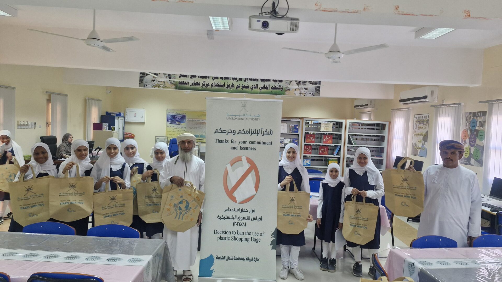 وفي ختام الفعالية، تم توزيع نحو 20 كيسًا صديقًا للبيئة على الطلبة، بهدف ترسيخ ثقافة الاستبدال وتعزيز السلوك البيئي الإيجابي.