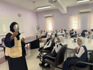 كما شملت البرامج على تنفيذ ورشة أخرى بعنوان “أنواع البيئات من حولنا” وذلك بالتعاون مع مدرسة سارة أم إسحاق للتعليم الأساسي بولاية السويق تم خلالها تقديم محاضرة تعريفية عن التنوع البيئي واستدامته في سلطنة عمان، صاحب الورشة حلقة تلوين لتعريف الطلاب بأهم الحيوانات البرية في سلطنة عمان مثل: الوعل العربي والنمر العربي والمها والوشق.