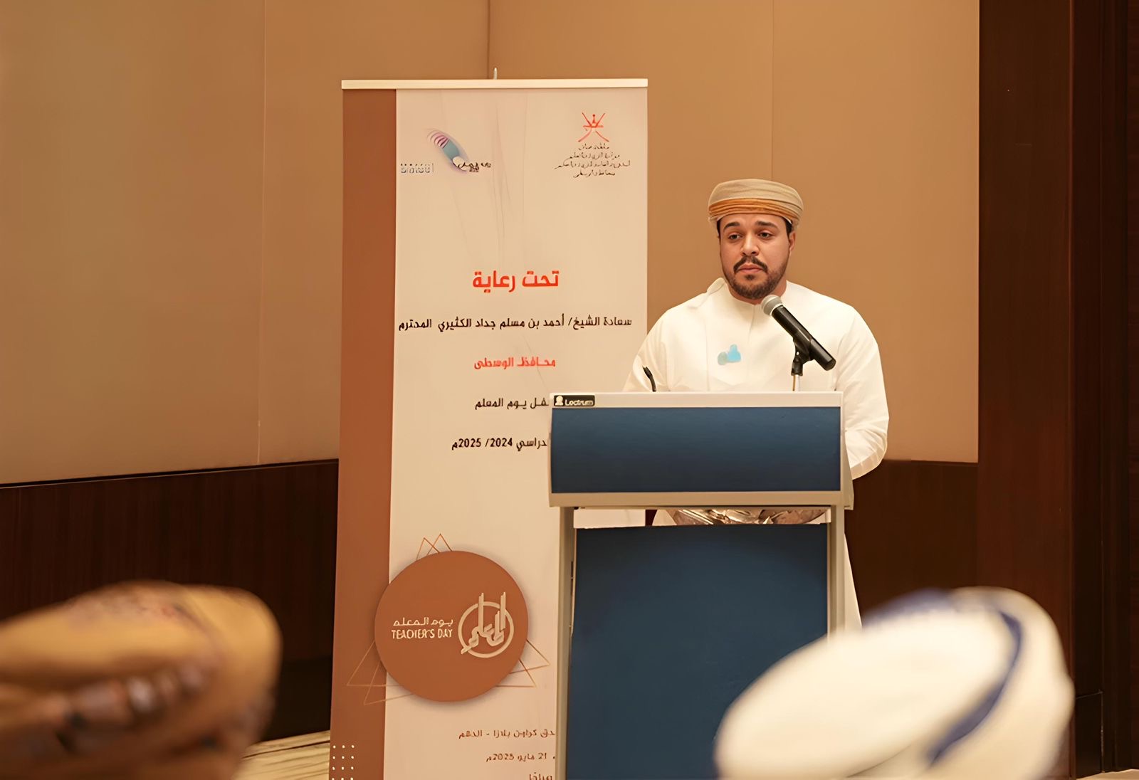 احتفلت المديرية العامة للتربية والتعليم بمحافظة الوسطى بيوم المعلم بتكريم 100 مكرم ومكرمة من الهيئات الإدارية والتدريسية والفنية من المجيدين بمدارس المحافظة للعام الدراسي 2024/2025م وفقا لمحاور المبادرات التربوية والتكريم الشرفي وذلك خلال الحفل الذي أقيم بقاعة فندق كراون بلازا بولاية الدقم تحت رعاية سعادة الشيخ احمد بن مسلم بن سهيل بن جداد الكثيري محافظ الوسطى وبحضور الاستاذ ماجد بن ناصر السناوي المدير العام وحضور أصحاب السعادة الولاة وأعضاء مجلس الشورى ومسؤولي المؤسسات الحكومية والعسكرية والأمنية والقطاع الخاص وعدد من الكوادر الإدارية والتربوية.