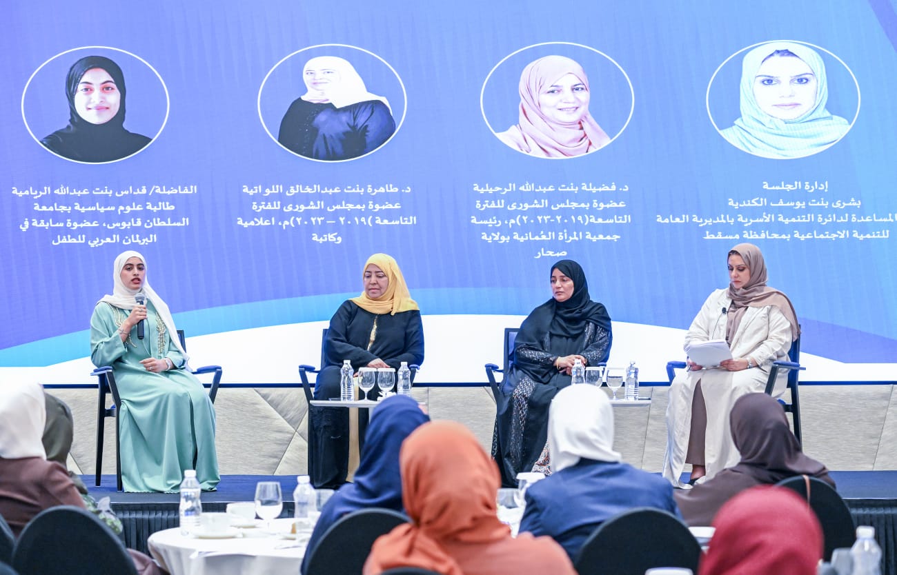 وخلال الجلسة أكدت سعاد اليزيدية مديرة دائرة شؤون المرأة بوزارة التنمية الاجتماعية في كلمة الوزارة بأن جهود الوزارة في مجال تمكين المرأة مستمرة، مشيرة إلى تنفيذ عدد من البرامج والمبادرات وعقد لقاءات مع القيادات النسائية وتنفيذ برامج تدريبية استهدفت المترشحات لعضوية المجلس البلدي ومجلس الشورى، كما نفذت الوزارة مبادرة ” تسمو” بالشراكة مع الأكاديمية السلطانية للإدارة، والتي هدفت إلى تمكين 50 امرأة عمانية لتولي مناصب قيادية.