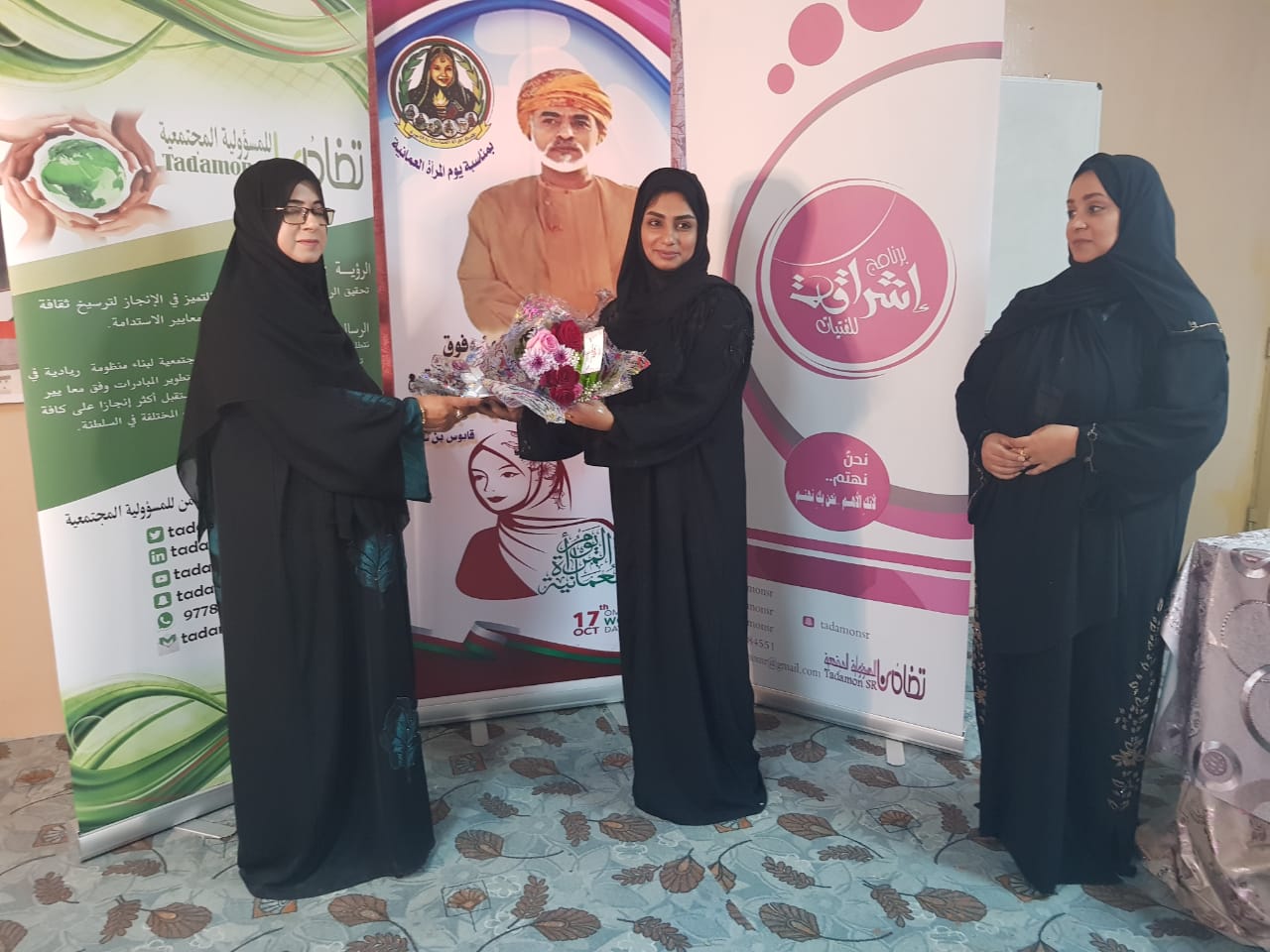 وأخيرا تتوجةادارة تضامن للمسؤولية المجتمعية بخالص الشكر لكلا من المبدعات في سماء العطاء بدرية بنت عبدالله الحوسني وبدرية بنت سيف الحوسني ولمياء المعمري وماجدة الخميسي وحليمة الفزاري وشيخة الفزاري وسهام الحوسني وشكر خاص لجمعية المرأة العمانية بالخابورة على تعاونهم