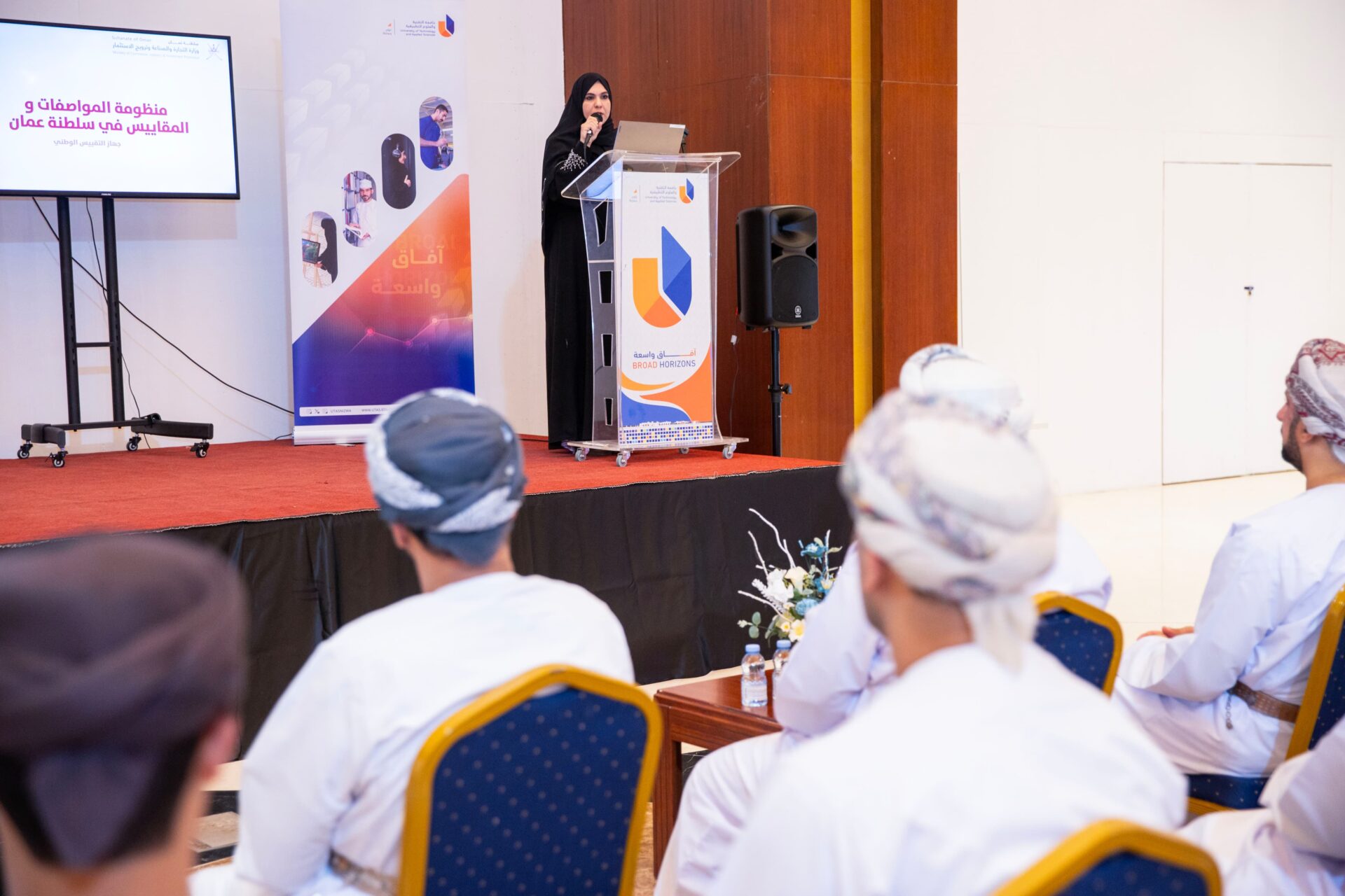 لتعزيز الوعي بأهمية المواصفات والمقاييس، نظمت إدارة التجارة والصناعة وترويج الاستثمار بالتعاون مع جامعة التقنية والعلوم التطبيقية بنزوى اليوم الاثنين الموافق 16 / 6 / 2025م بجراند مول نزوى المعرض التوعوي للمواصفات والمقاييس بعنوان ( معيار )، وذلك تحت رعاية الدكتور محمد بن راشد بن حمدان المعمري مساعد رئيس جامعة التقنية والعلوم التطبيقية بنزوى، وبحضور عدد من المسؤولين من الجهات الحكومية.