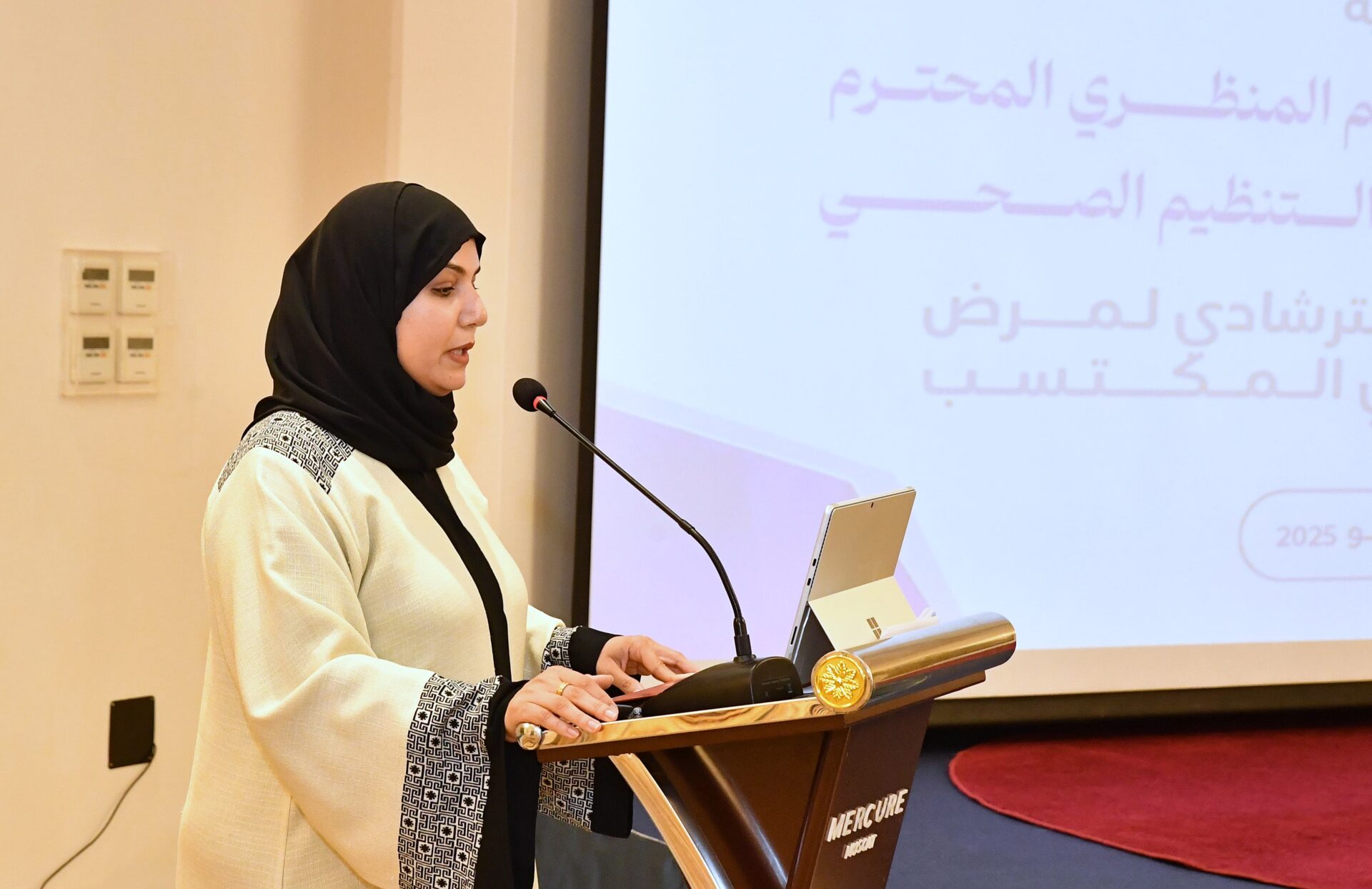 كما ألقت الدكتورة أمل بنت سيف المعنية ــ المديرة العامة لمركز مراقبة الأمراض والوقاية منها بوزارة الصحة كلمة رحبت فيها براعي الحفل والحضور والمحاضرين والمشاركين من الكوادر الصحية بمختلف التخصصات الطبية والعلاجية والطبية المساعدة ، وأشادت بالجهود المخلصة التي قام بها فريق العمل المكلف بإعداد ” الدليل الاسترشادي لفيروس نقص المناعة البشري (HIV) ” .