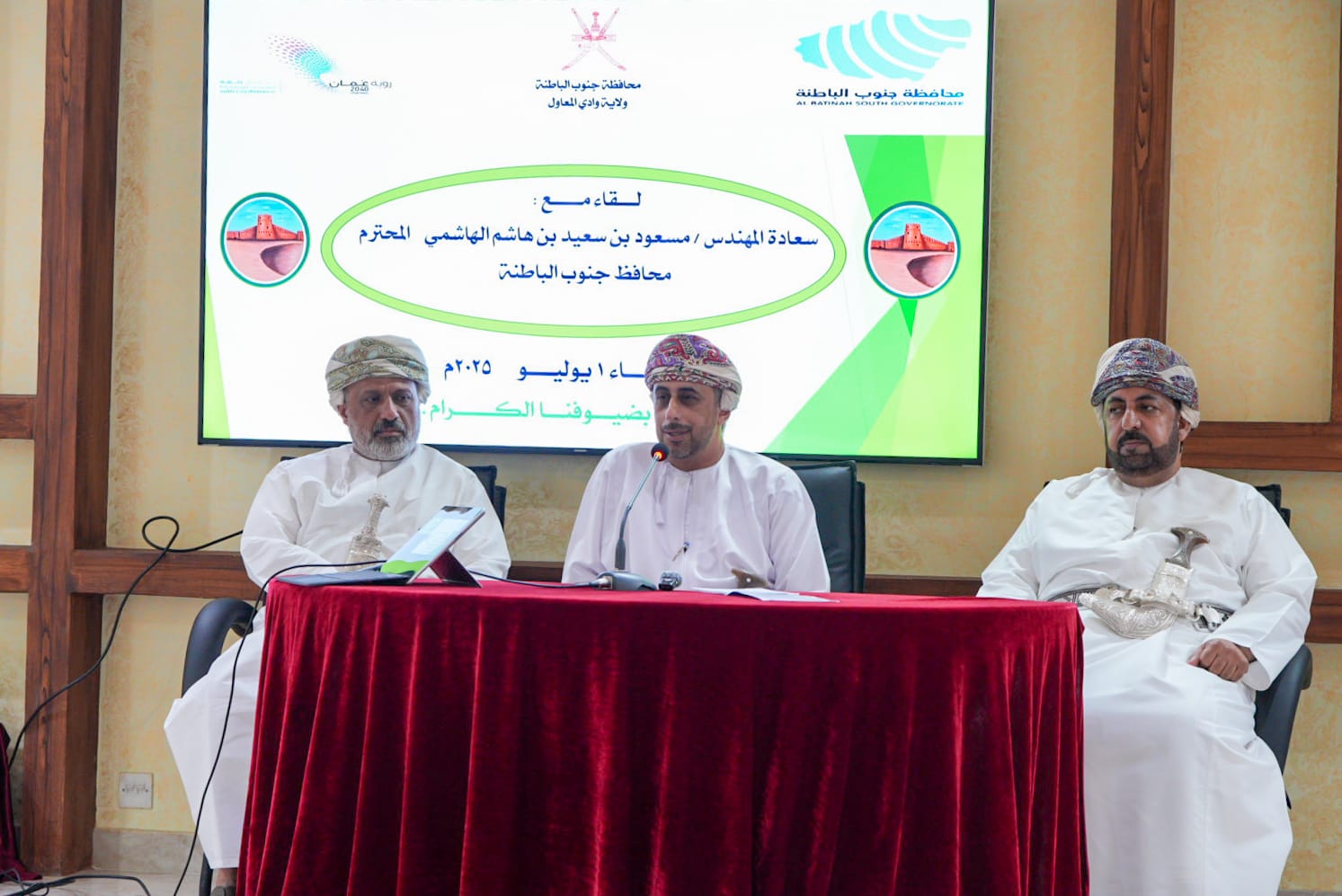 ويأتي هذا اللقاء في إطار حرص محافظة جنوب الباطنة على متابعة المشاريع المنفذة بمختلف ولايات المحافظة، والوقوف على احتياجات المواطنين وتعزيز الشراكة المجتمعية بما يحقق التنمية المستدامة.