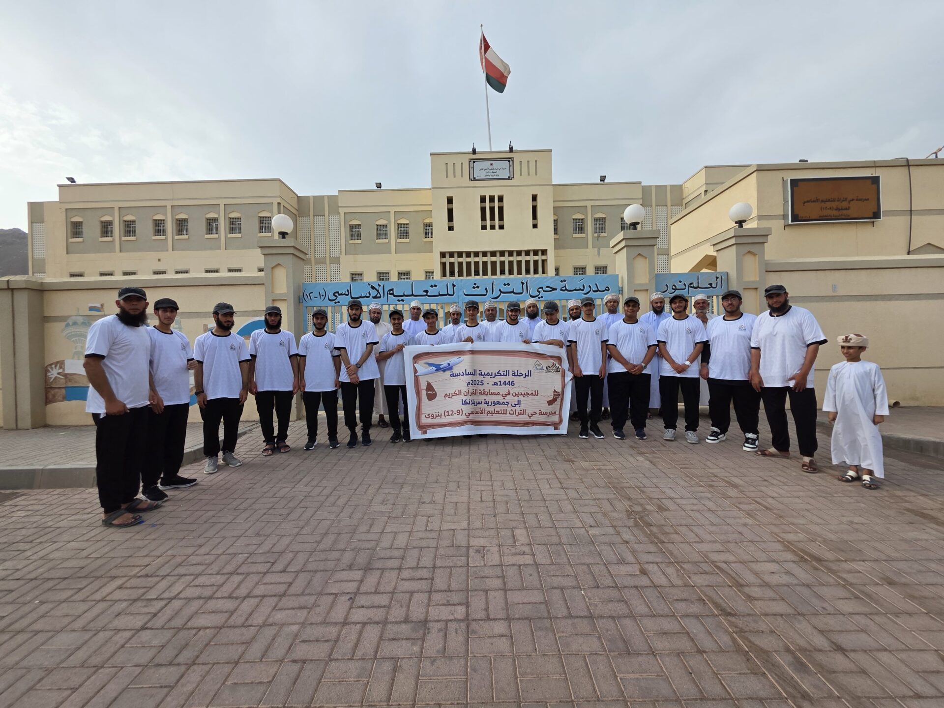 غادرت كوكبة من طلبة مدرسة حي التراث للتعليم الأساسي بولاية نزوى أرض الوطن في رحلتها التكريمية السادسة للطلبة المجيدين في مسابقة حفظ القرآن الكريم وتلاوته، والتي توجهة هذا العام إلى الجمهورية السريلانكية. وتهدف هذه المبادرة لتحفيز الطلبة على الاستمرار في حفظ كتاب الله تعالى، وتشجيع أقرانهم على الاهتمام بالحفظ والتلاوة.