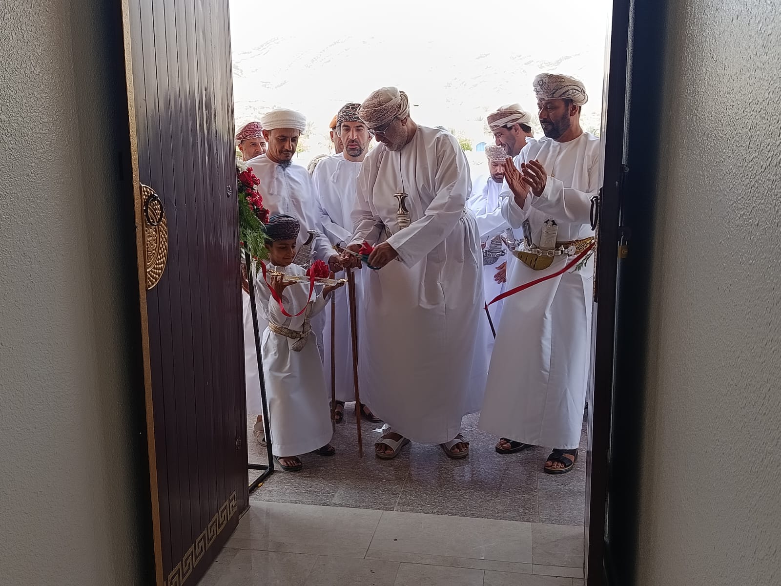 بعدها قام سعادته بتكريم المؤسسين والداعمين للمكتبة العامة وقدم سعادة الشيخ والي ولاية وادي بني خالد هدية تذكارية لراعي الحفل .