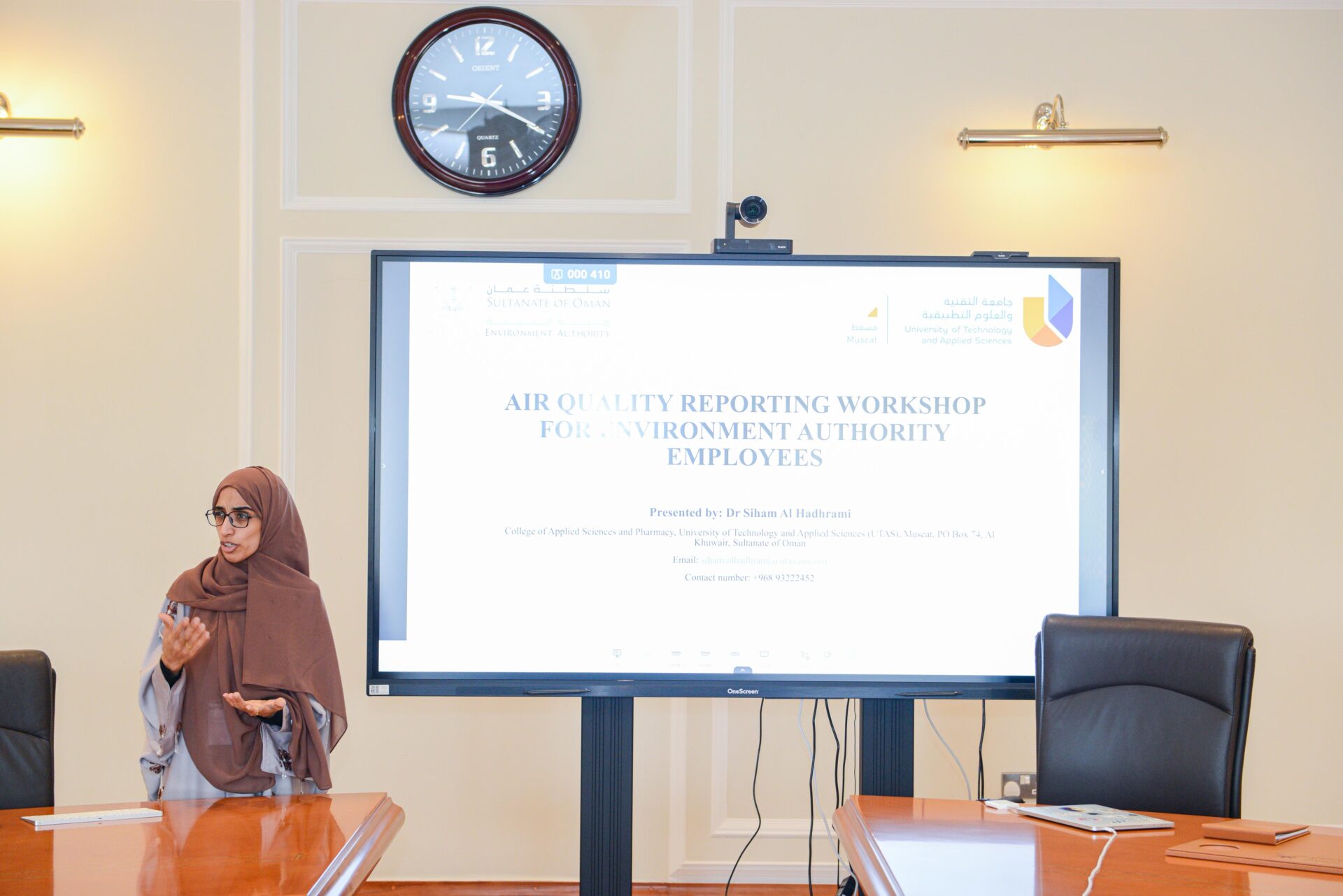 نظمت هيئة البيئة بالتعاون مع جامعة التقنية والعلوم التطبيقية اليوم أعمال حلقة العمل التدريبية المتخصصة بعنوان “آلية إعداد تقارير جودة الهواء”، وذلك بمشاركة عدد من المختصين والفنيين من الجهات ذات العلاقة، !تستمر حتى 17 يوليو الجاري.