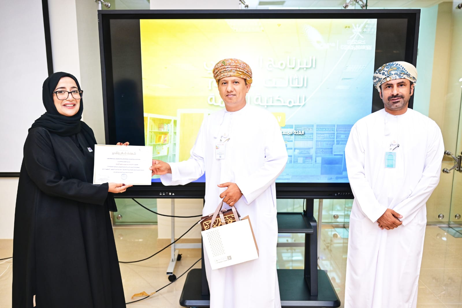 وفي ختام البرنامج قام الدكتور حامد بن علي المشيخي مدير دائرة الثقافة بالمديرية العامة للثقافة والرياضة والشباب بمحافظة ظفار راعي الختام بتكريم مقدمي المحاضرات والورش المنفذه في البرنامج الصيفي للمكتبة.