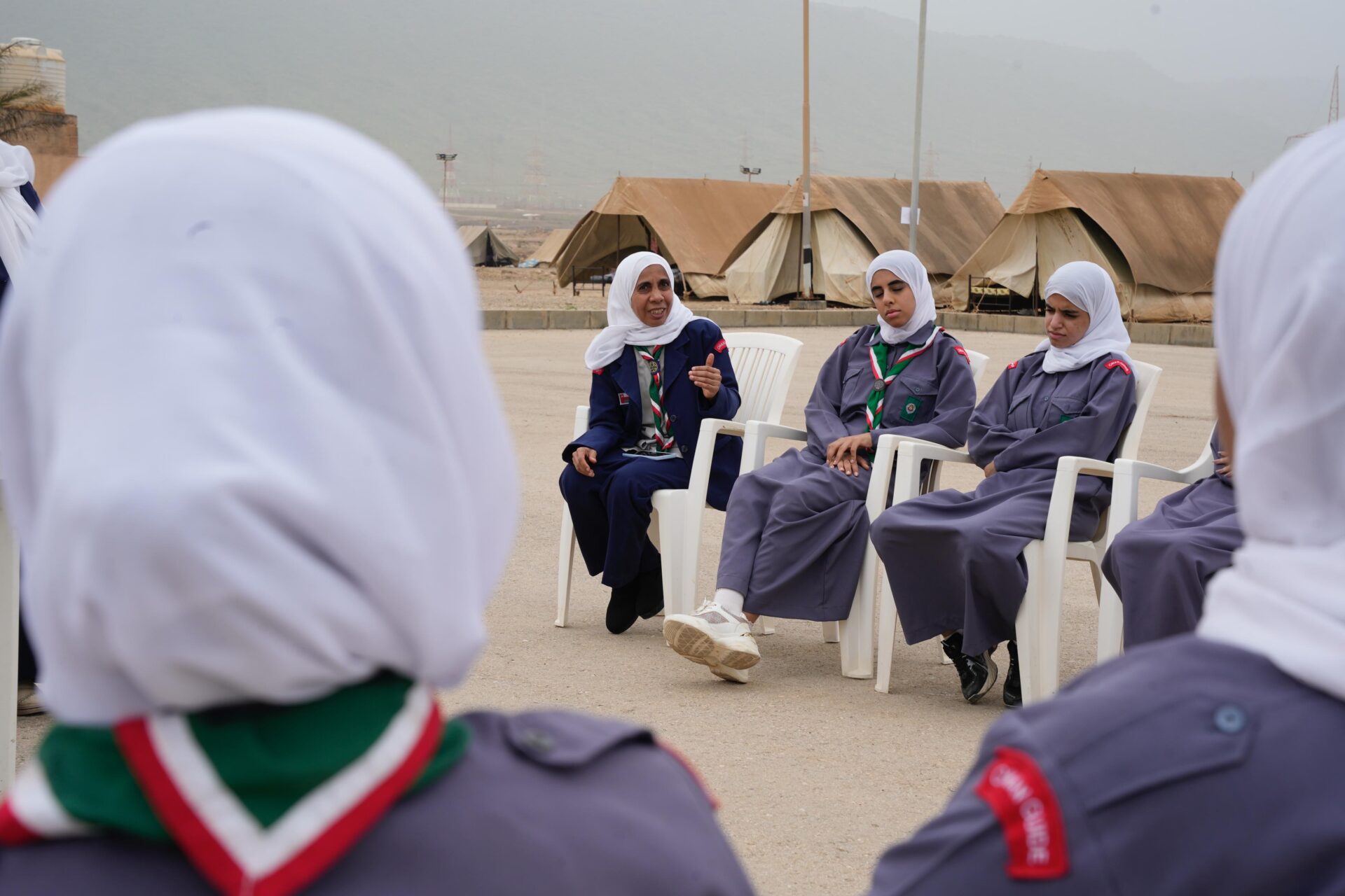 لليوم الثاني على التوالي تواصلت فعاليات ومناشط المخيم الكشفي الصيفي للمرشدات والمتقدمات بسهل جبل آشور بمحافظة ظفار ، حيث أقيمت العديد من الورش والدورات التخصصية المتنوعة الشاملة للتطبيقات العملية الهادفة والتي تعني بإنماء الجوانب بصورة إيجابية فاعلة في مختلف المجالات لدى المشاركات .