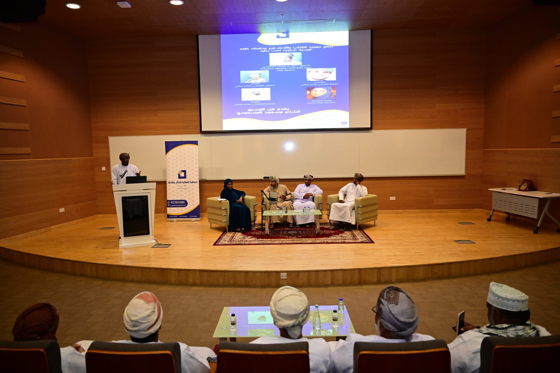 أمسية شعرية بعنوان “رذاذ الحرف” ظفاروالتي نظمها لجنة الشعر بالجمعية العُمانية للكتّاب والأدباء فرع محافظة ظفارتحت رعاية الدكتور خالد بن مسلم المشيخي عميد كلية الآداب والعلوم التطبيقية بجامعة وبحضور الدكتور سعيد بخيت بيت مبارك رئيس جمعية الكتاب والأدباء بظفار والعديد من الشعراء والأدباء والمهتمين .