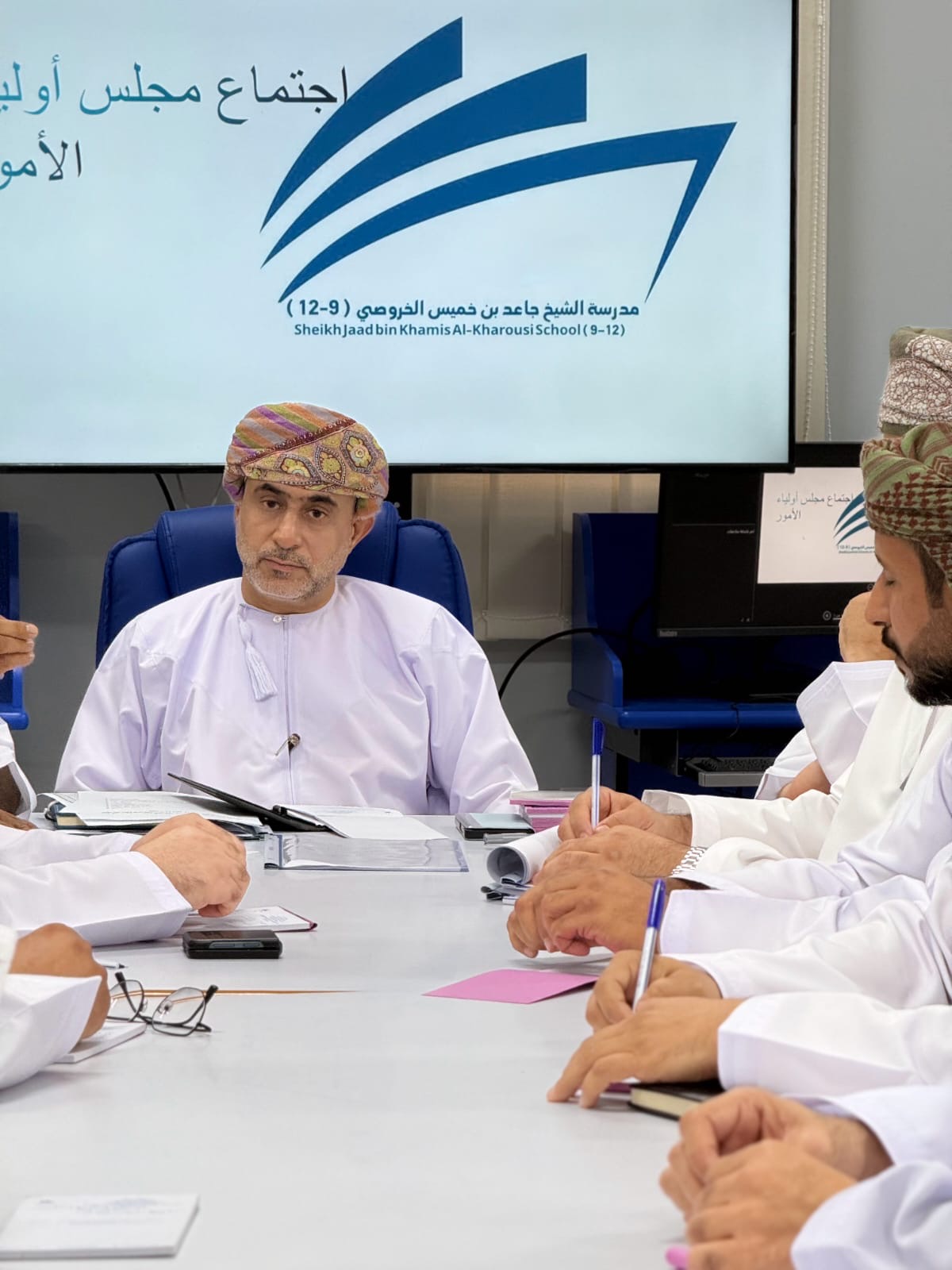 عقد مجلس أولياء الأمور بمدرسة الشيخ جاعد بن خميس الخروصي ( 9-12) بولاية العوابي بمحافظة جنوب الباطنة اليوم الإثنين إجتماعه الأول للعام الدراسي 2025/2026 برئاسة محمد بن هلال الخروصي رئيس المجلس وقد حضر الإجتماع أعضاء المجلس ونائب الرئيس مدير المدرسة يعقوب بن سالم المقبالي , بدأ الاجتماع بكلمة ترحيبية من قبل رئيس المجلس.