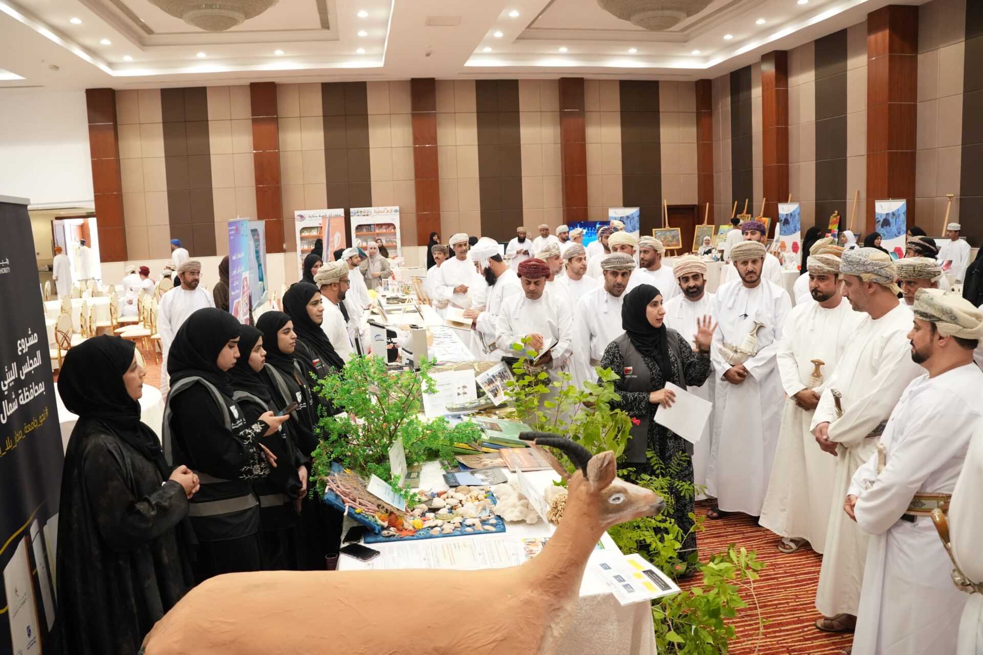واحتوى المعرض، الذي أُقيم في قاعة مجان بمدينة صحار، على مجموعة متميزة من الأركان التوعوية التي سلطت الضوء على: المحميات الطبيعية في سلطنة عُمان ودورها المحوري في تحقيق التوازن البيئي، وعروض حية لمجسمات للشعاب المرجانية والسلاحف البحرية في المياه العُمانية والمها العربي، مصنوعة من خامات صديقة للبيئة، وعرضاً تعريفياً لجهود هيئة البيئة في المحافظة وأهداف مشروع المجلس البيئي. بالاضافة إلى توثيق مصور لفعاليات البرنامج الصيفي الذي نُفذ خلال الفترة من 13 إلى 15 يوليو 2025.