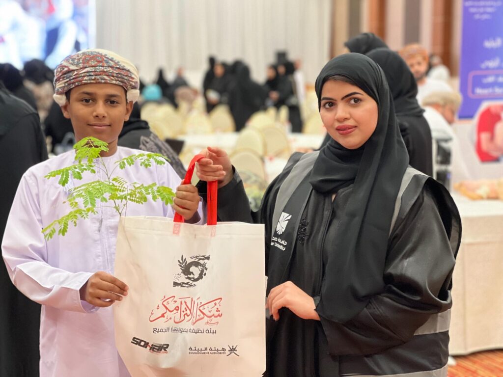 وسعياً لنشر الوعي العملي، تم خلال الفعاليات توزيع 100 حقيبة قماشية صديقة للبيئة، بالإضافة إلى 50 شتلة من أشجار الزينة على الحضور.