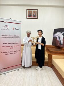 وقد قدم الدورة كلا من المحاضرتان الرسميتان بالاتحاد الدولي للفروسية الاندونيسية لاراساتي والروسية أرينا مكنامي بحضور خالد بن محمد السيفي مدير دائرة أنشطة الفروسية، حيث تم بعد اختتام الدورة التدريبية توزيع الشهادات على المشاركين.