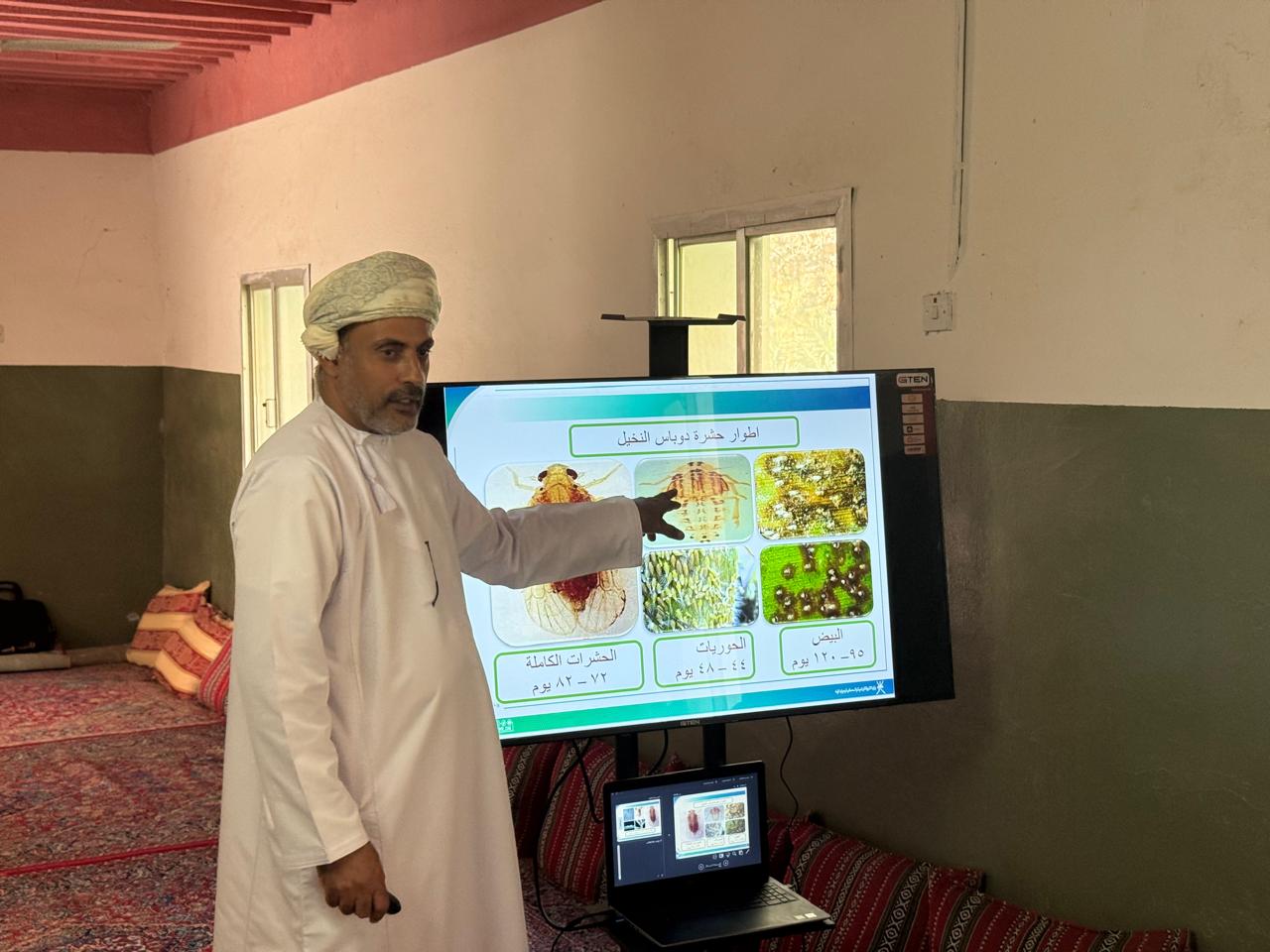دائرة الثروة الزراعية وموارد المياه بولاية الحمراء تنفذ محاضرة بعنوان “المكافحة الميكانيكية لحشرة دوباس النخيل” ببلدة الحاجر