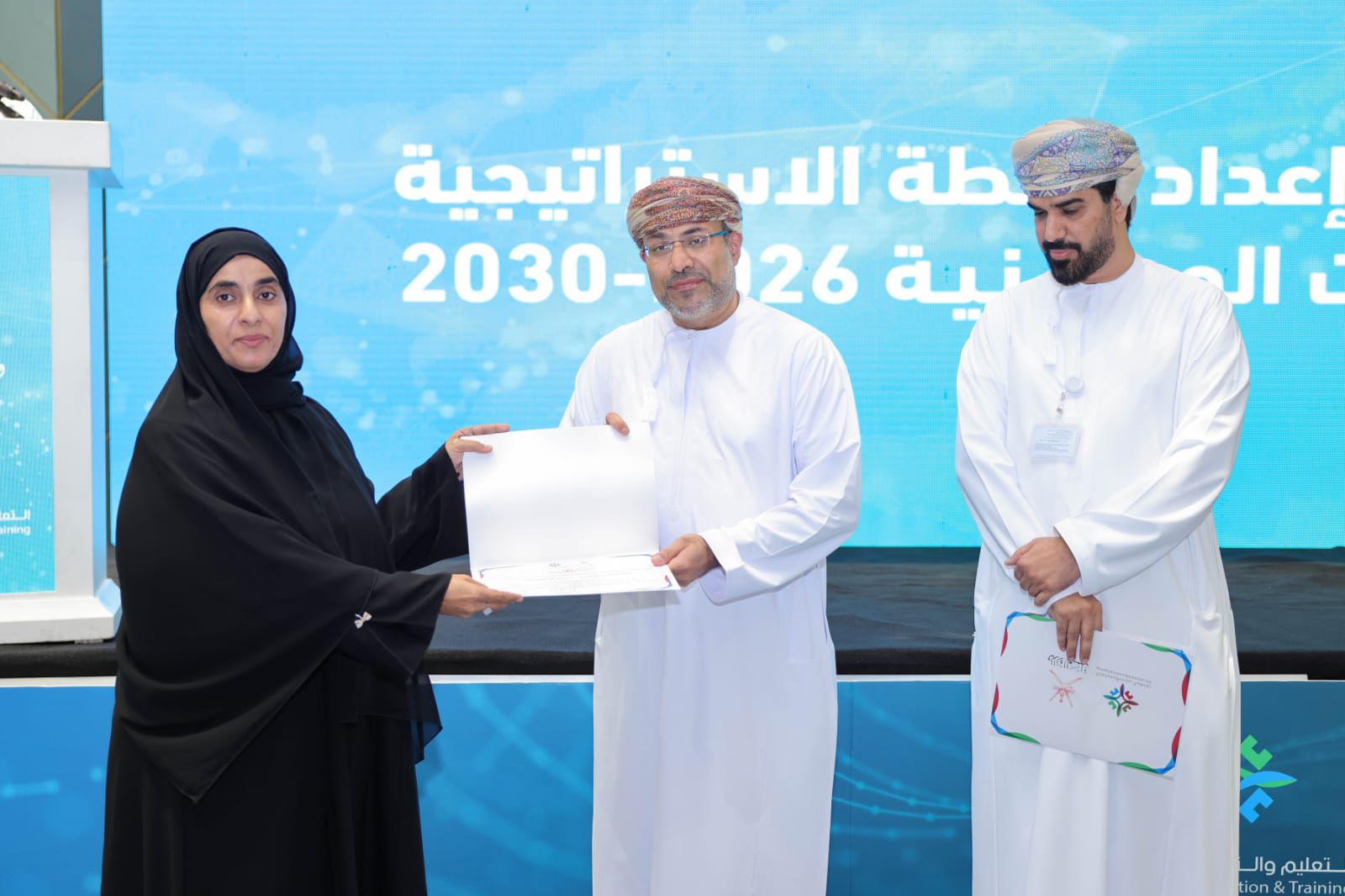 اختتمت وزارة العمل اليوم بقاعة فندق معاني بولاية السيب فعاليات خطة العمل الخاصة بإعداد خطة استراتيجية عمل الكليات المهنية بسلطنة عمان ، والتي شارك فيها على مدى يومين عدد من المسؤولين والمختصين من مختلف الجهات الحكومية المدنية والعسكرية والامنية بالإضافة إلى بعض المسؤولين بمؤسسات القطاع الخاص. والتي جاءت بهدف تعزيز جودة التعليم والتدريب المهني، وإعداد جيل من الكفاءات الوطنية القادرة على الإسهام الفاعل في مسيرة التنمية الشاملة لسلطنة عمان. وقد شهد اليوم الختامي للورشة مناقشة محوري: القيم في مجال التدريب ، سمات خريجي الكليات، بالإضافة الى عرض نتائج الجلسات النقاشية للورشة والتصويت على كافة المحاور.