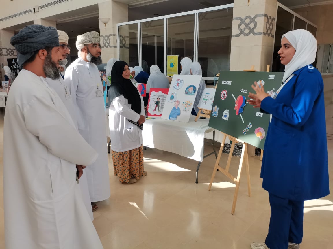في إطار الاحتفاء بـاليوم العالمي للصحة النفسية، نظّمت كلية عُمان للعلوم الصحية – فرع شمال الشرقية معرضًا توعويًا في مستشفى إبراء المرجعي بتقديم طلاب السنة الرابعة.