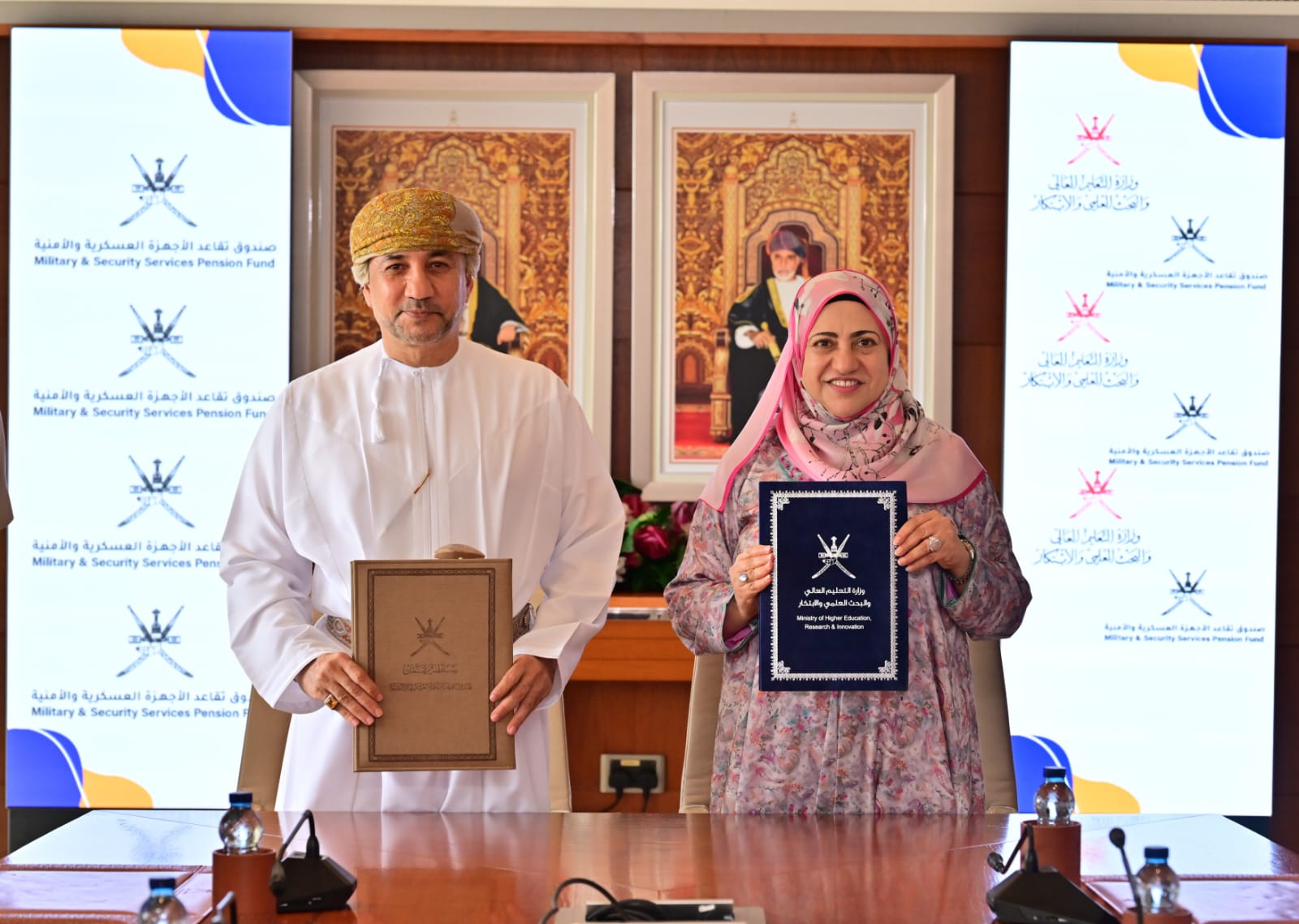 في إطار تعزيز الشراكة في تنمية الكوادر البشرية العُمانية وتلبية احتياجات سوق العمل، لا سيما في القطاعات العسكرية والأمنية، وقّعت وزارة التعليم العالي والبحث العلمي والابتكار اتفاقية تعاون مع صندوق تقاعد الأجهزة العسكرية والأمنية في مجال الابتعاث الخارجي.