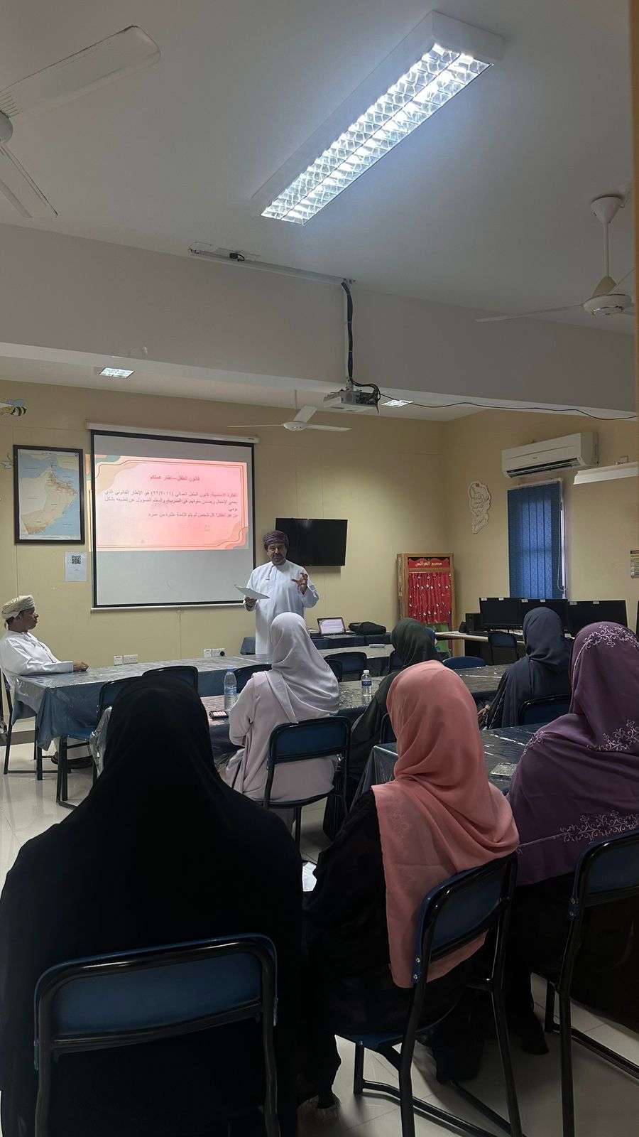 وتناول اللقاء أبرز الجوانب التي نص عليها قانون الطفل العُماني رقم (22/2014)، موضحًا مسؤولية الكادر التعليمي في رصد أي انتهاكات أو ممارسات تمس حقوق الطلبة، وآليات التعامل مع الحالات وفق القنوات القانونية المعتمدة.