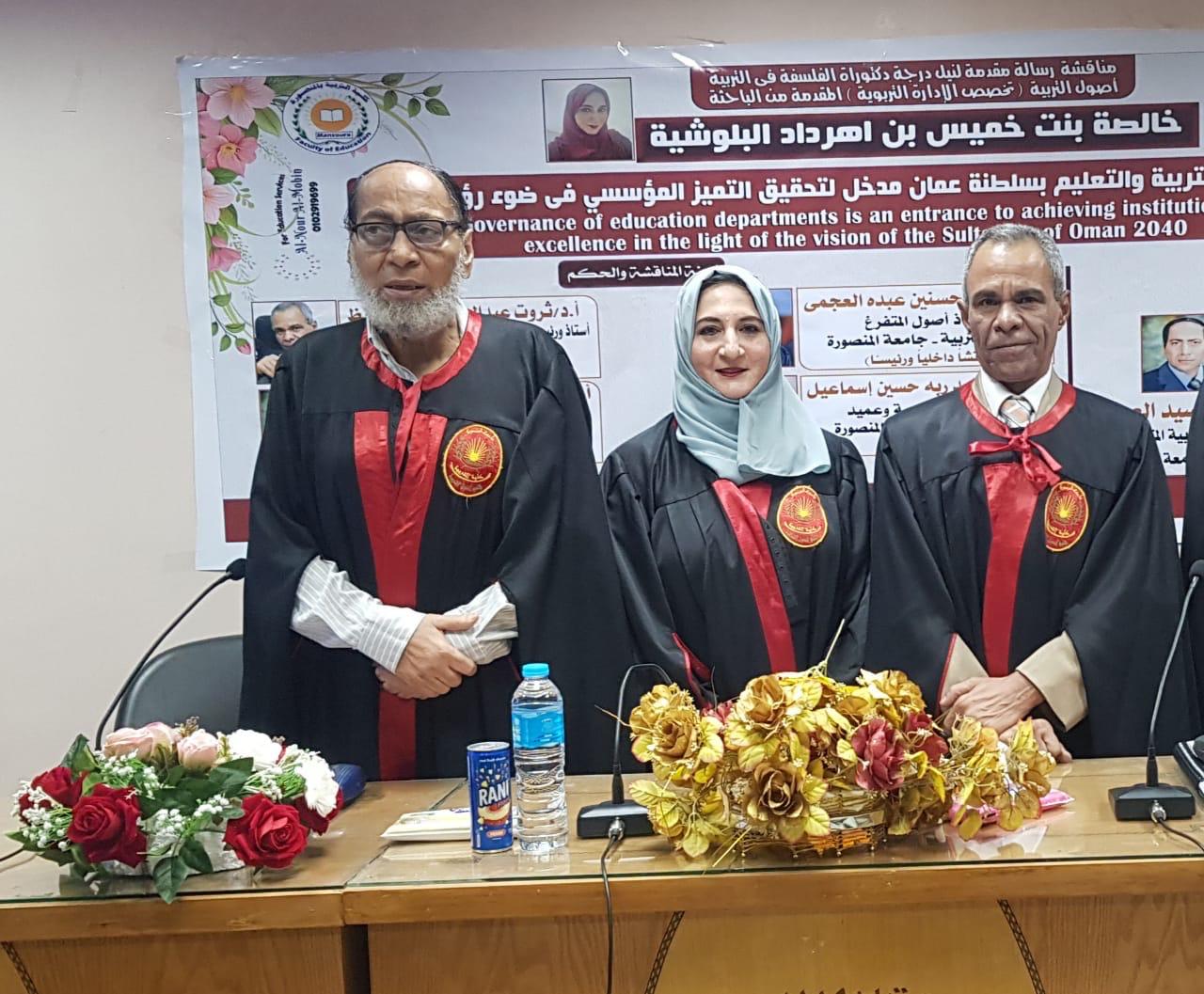دكتوراة بتقدير امتياز بمرتبة الشرف لخالصة البلوشي في موضوع حوكمة إدارات التربية والتعليم في سلطنة عمان