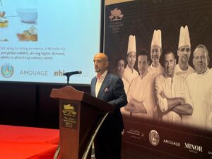 وعن الطهاة المشاركين قال : طهاتنا مثل الشيف أندريا، الشيف كيم وسيتواجد ضمن الطهاة الشيف خلود والشيف عمار وهما من المواهب العُمانية المتواجدة معنا هنا وسوف يقدمان قائمة طعام متعددة الأطباق في مطعم “سكالان”، حيث سيستخدمون منتجات محلية بالطبع وسيتمكن الضيوف سواء كانوا من داخل السلطنة أو من دول أخرى من التعرف على صلالة وما لدينا هنا وكيف يمكننا تحويل مكونات بسيطة إلى شيء مذهل ولذيذ.
