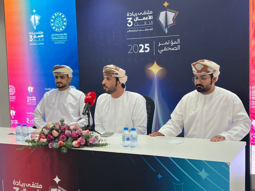 عقد صباح اليوم المؤتمر الصحفي للإعلان عن تفاصيل ملتقى ريادة الأعمال الثالث بمحافظة الوسطى، والذي تنظمه غرفة تجارة وصناعة عمان فرع محافظة الوسطى بالتعاون مع شركة الخليل للإعلام والاستثمار، والمقرر إقامته خلال يومي الأحد والاثنين الموافق 17 و18 نوفمبر 2025 في ولاية الدقم