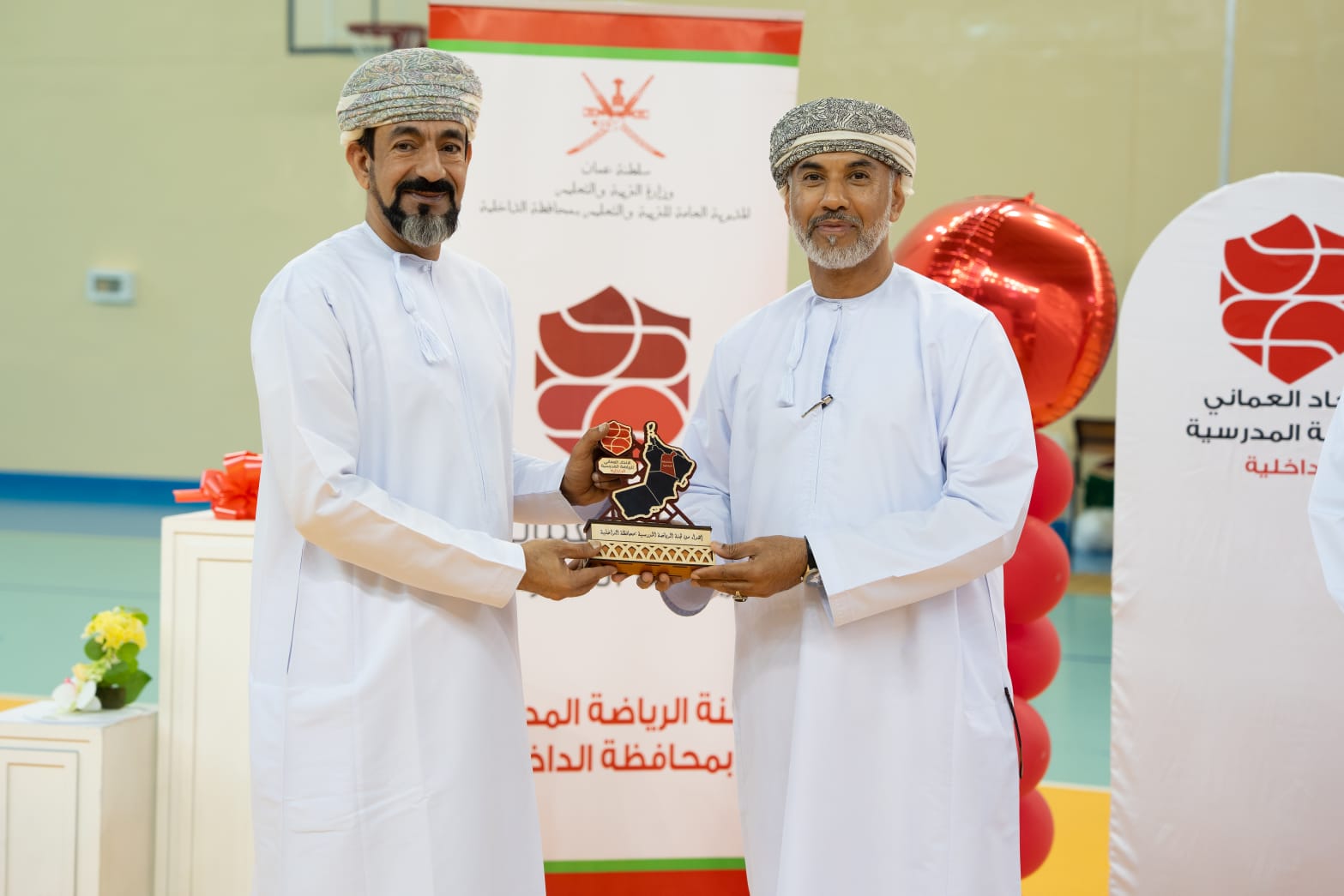 حيث أقيم حفل الختام تحت رعاية أحمد بن محمد الحراصي مدير إدارة الثقافة والرياضة والشباب بمحافظة الداخلية، وبحضور عدد من أعضاء اللجنة بتعليمية الداخلية وعدد من أولياء الأمور.