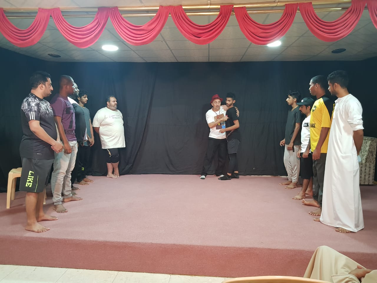 حيث إستضافت الفرقة الأستاذ الحسن مختاري رئيس جمعية مسرح أقواس من المملكة المغربية والذي أدار الورشة.