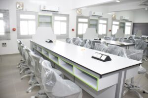 كما يضم المبنى مرافق الدعم كغرفة لتوزيع الشبكة، وغرفة للحارس، وغرفة لسائقي الحافلات.