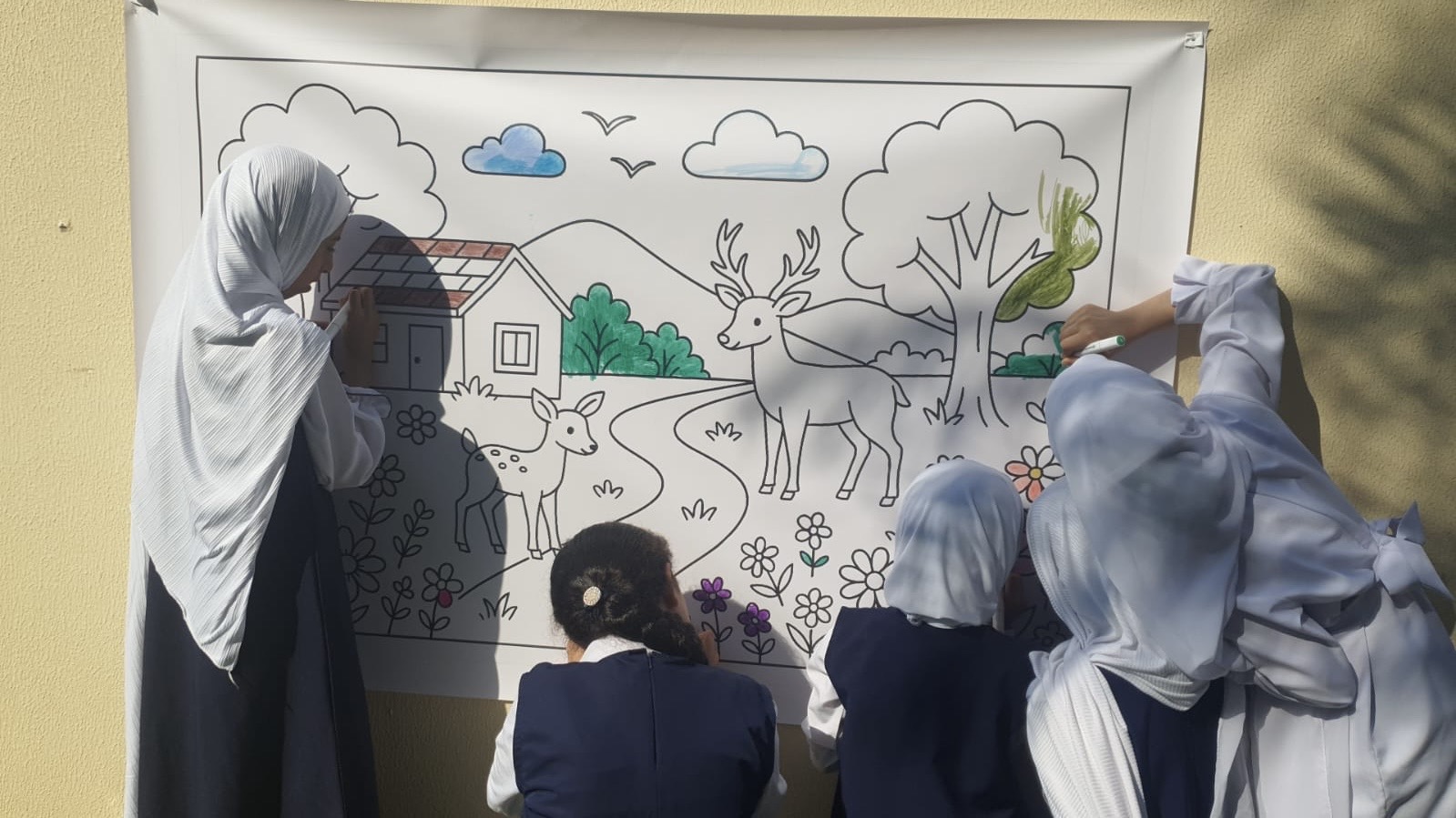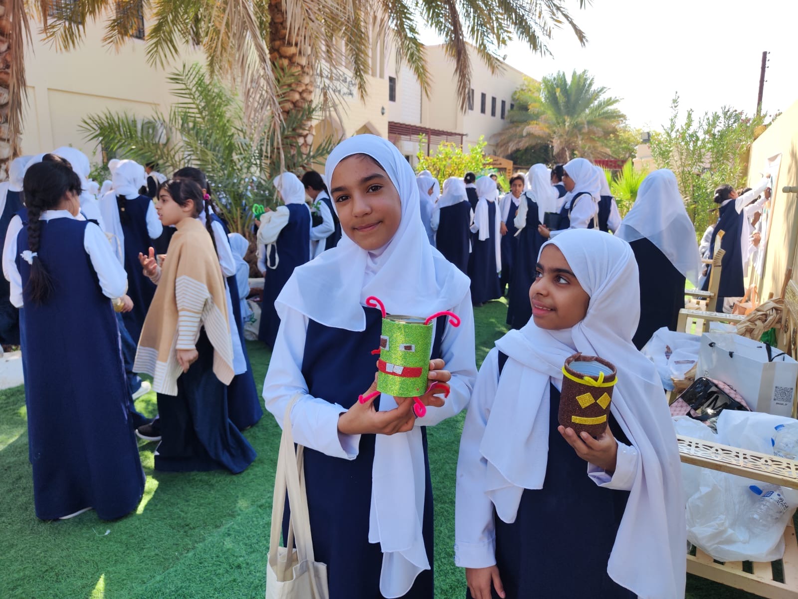 تضمّن اليوم عددًا من الأركان التفاعلية، من أبرزها ركن إعادة التدوير الذي جرى خلاله استغلال العلب الفارغة لصنع حوامل أقلام بطريقة مبتكرة، وركن تلوين لوحة جدارية عبّرت عن بيئةٍ خضراء آمنة. كما تم توزيع أنواع مختلفة من بذور النباتات على الطالبات تشجيعًا لهن على الزراعة والعناية بالنباتات في منازلهن.